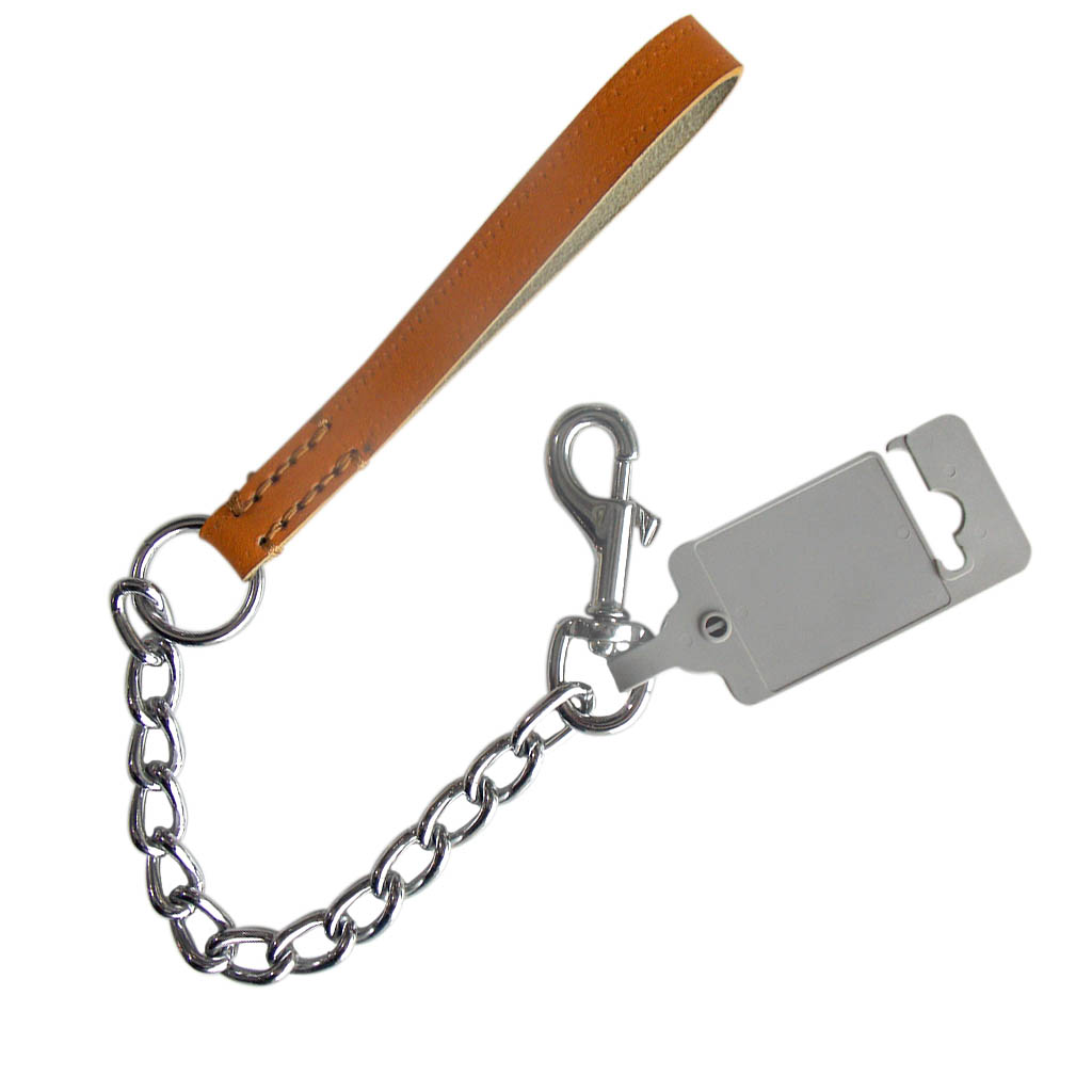 4 mm zincir bakla kalınlığına ve 32 cm zincir + 17 cm sap uzunluğuna sahip deri saplı kısa zincir gezdirme