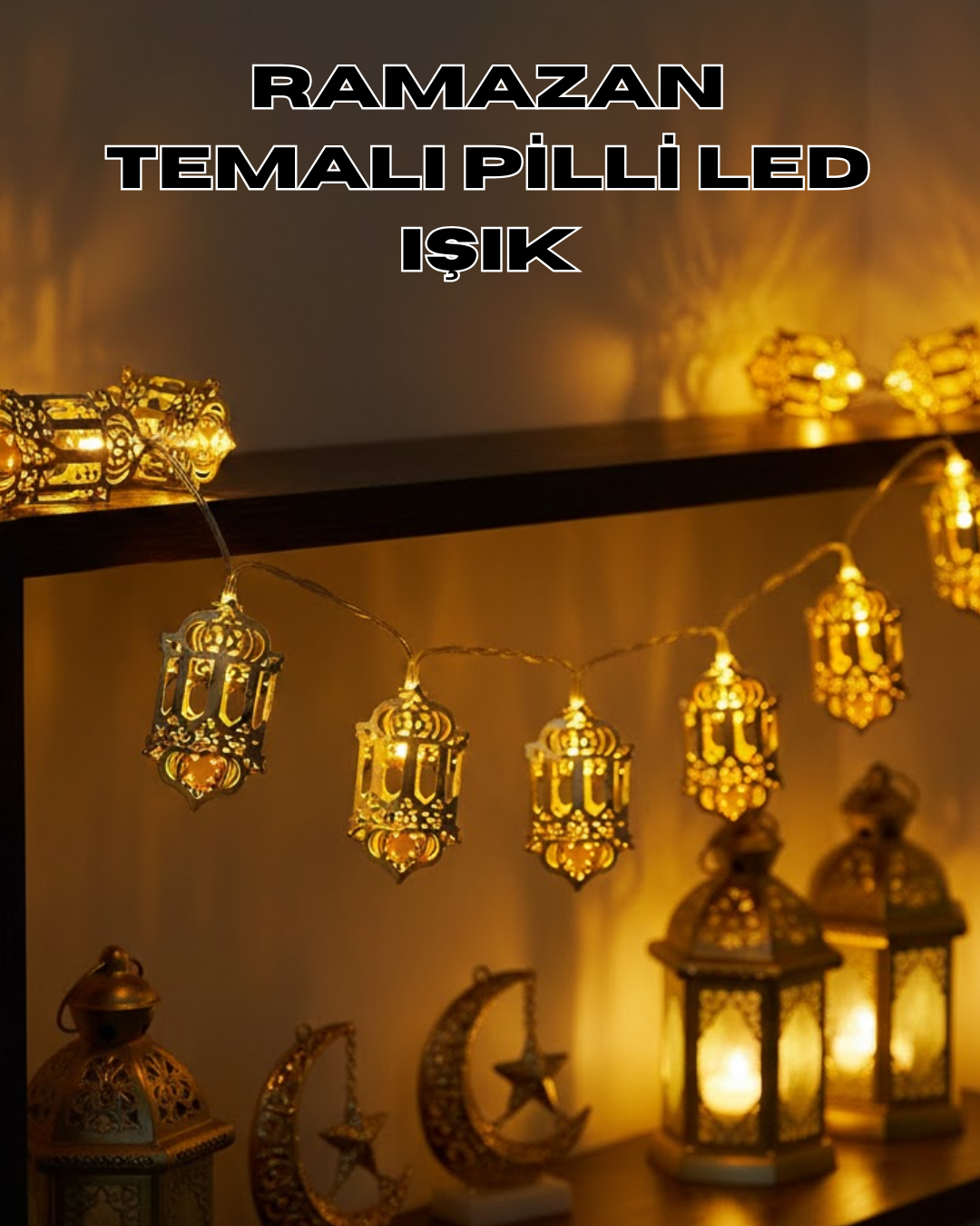 Ürünün pilli yapısı, kullanım alanını oldukça genişletir. Elektrik prizine ihtiyaç duyulmaması sayesinde raf, masa, kitaplık, pencere önü veya dresuar gibi alanlarda rahatlıkla kullanılabilir. Kablo görünümü olmadan daha düzenli ve sade bir dekorasyon imkânı sunar. Bu özellik, özellikle ramazan dekorasyonu yaparken büyük kolaylık sağlar.