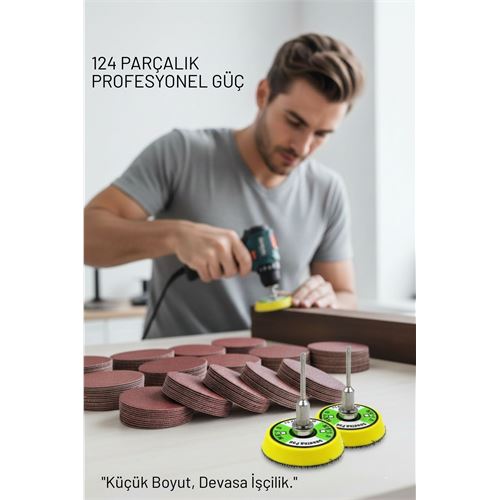 Bu özel setten sepete 1 adet eklediğinizde, elinize toplam 124 parçadan oluşan dev bir profesyonel paket ulaşacaktır (2 Adet 5cm Taban, 2 Adet Çelik Mil, 120 Adet Karma Kum Zımpara).