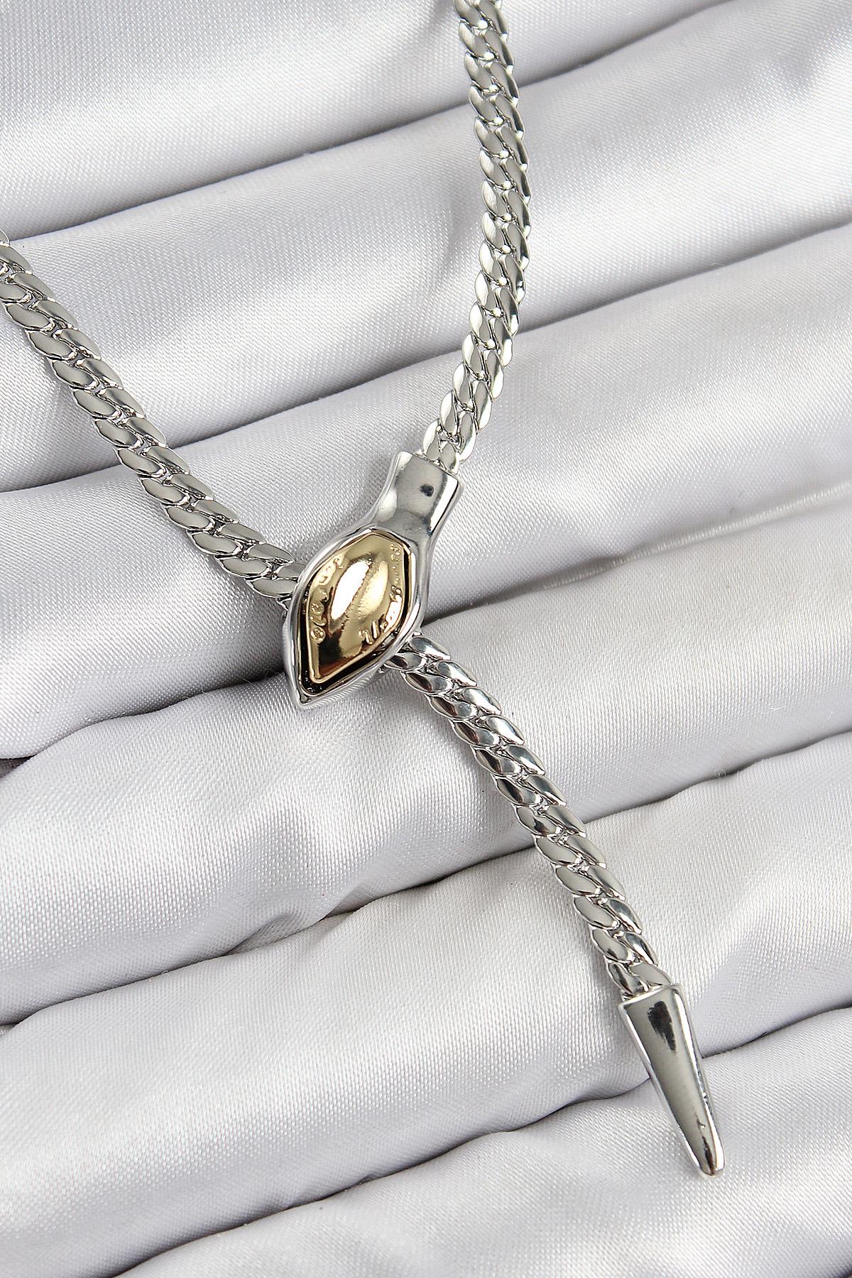 Pirinç Asansörlü Yılan Model Gümüş Renk Kadın Kolye - TJ-BKO10432