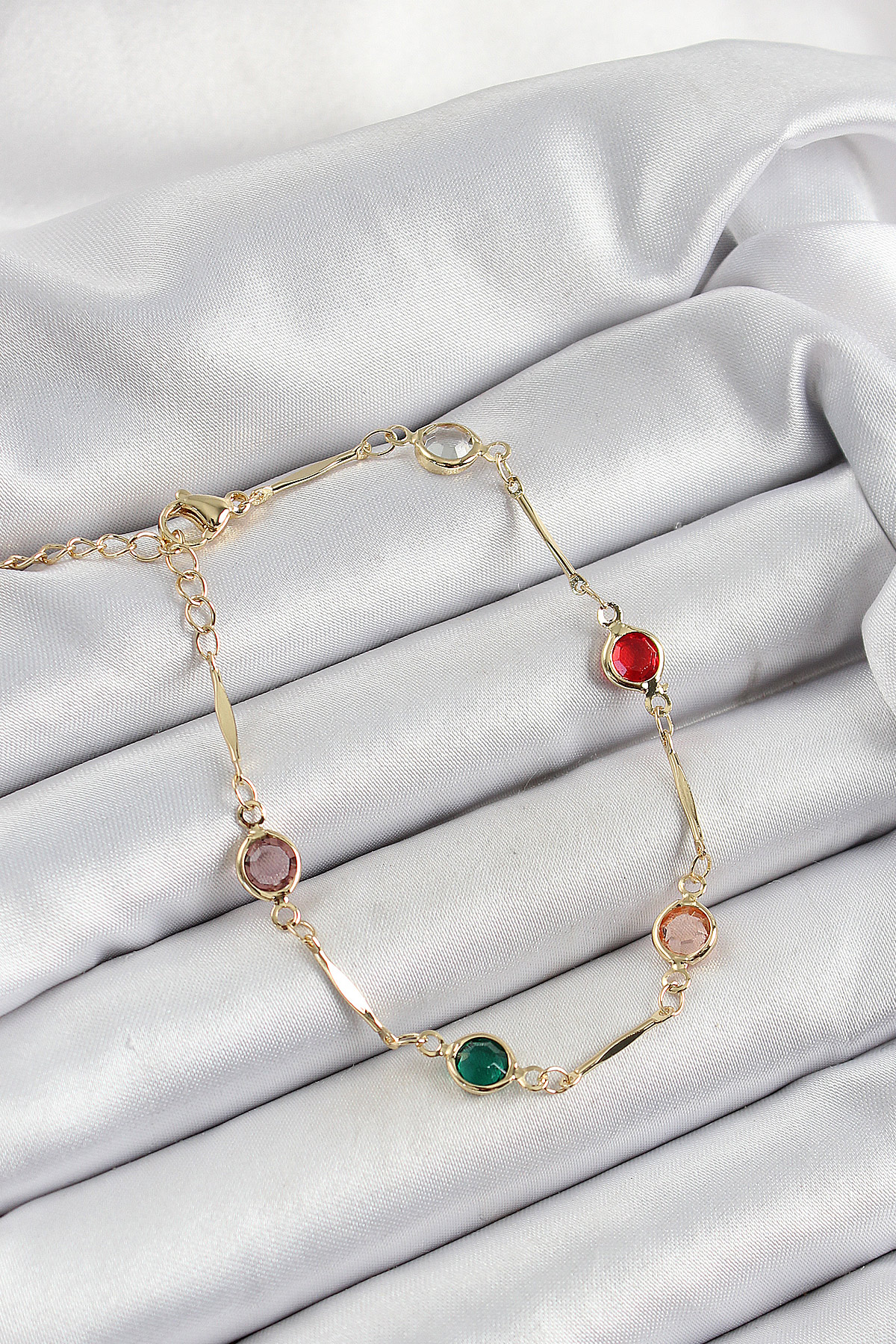 Pirinç Asorti Model Gold Renk Zirkon Taşlı Kadın Bileklik - TJ-BB7038