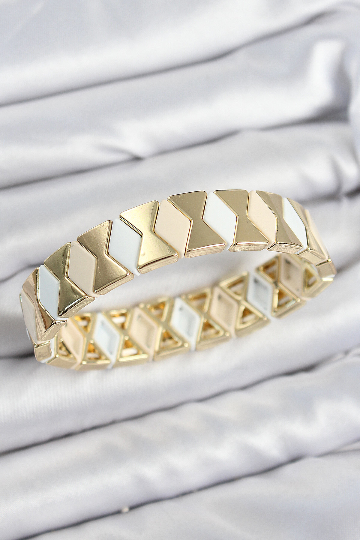 Pirinç Baklava Desenli Krem Beyaz Gold Renk Lastikli Kadın Bileklik - TJ-BB7645