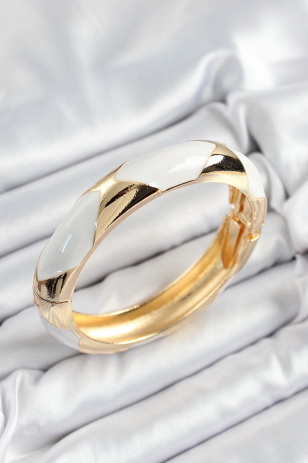 Pirinç Beyaz Mineli Baklava Model Gold Renk Kadın Kelepçe - TJ-BB7327