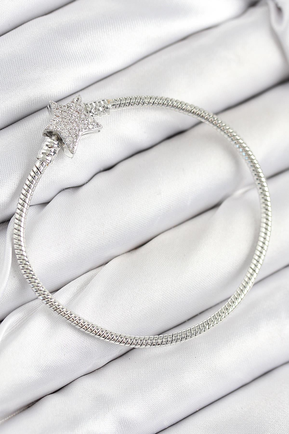 Pirinç Charm Zirkon Taşlı Yıldız Model Gümüş Renk Kadın Bileklik - TJ-BB7804