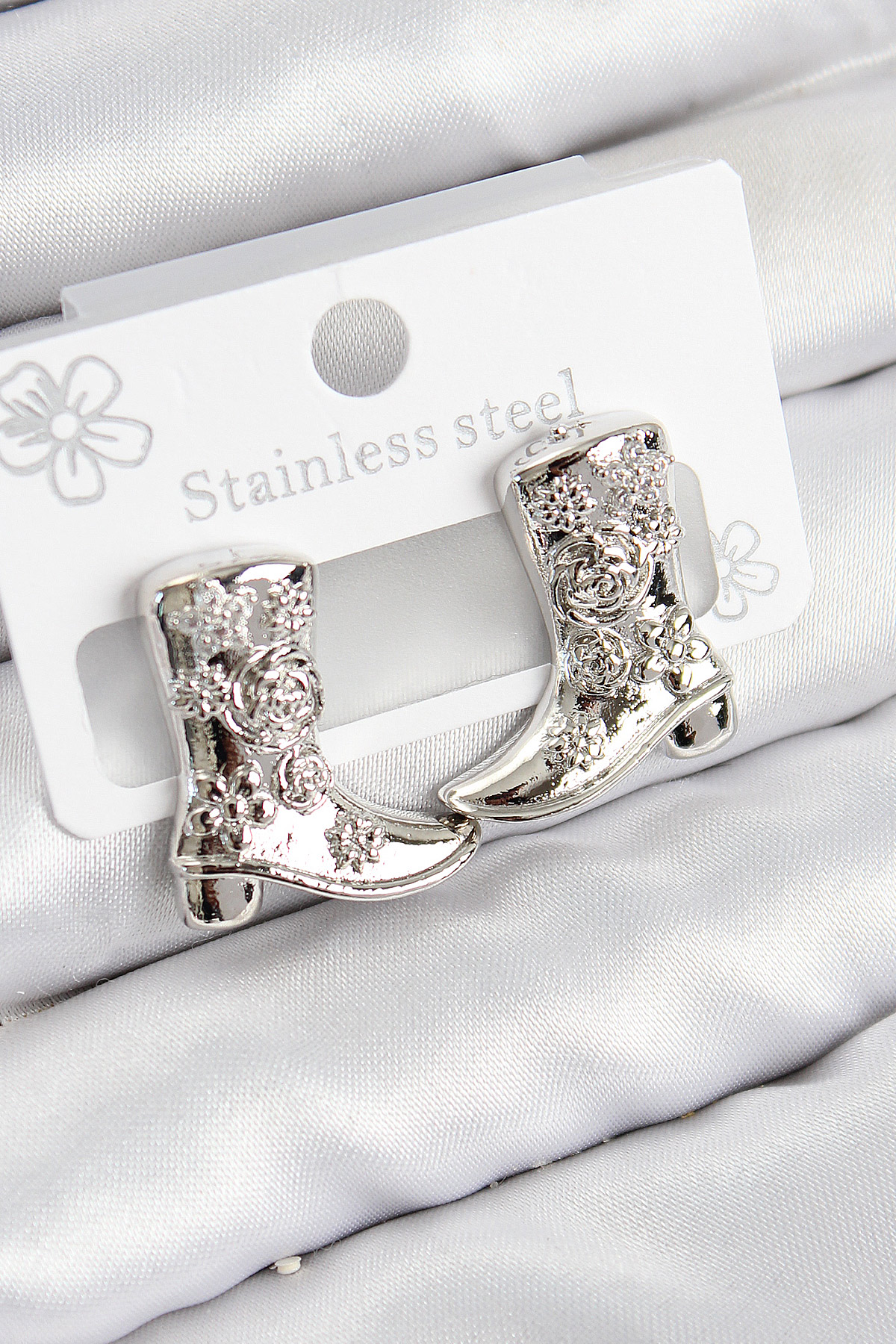 Pirinç Çizme Model Gümüş Renk Kadın Küpe - TJ-BKP11035