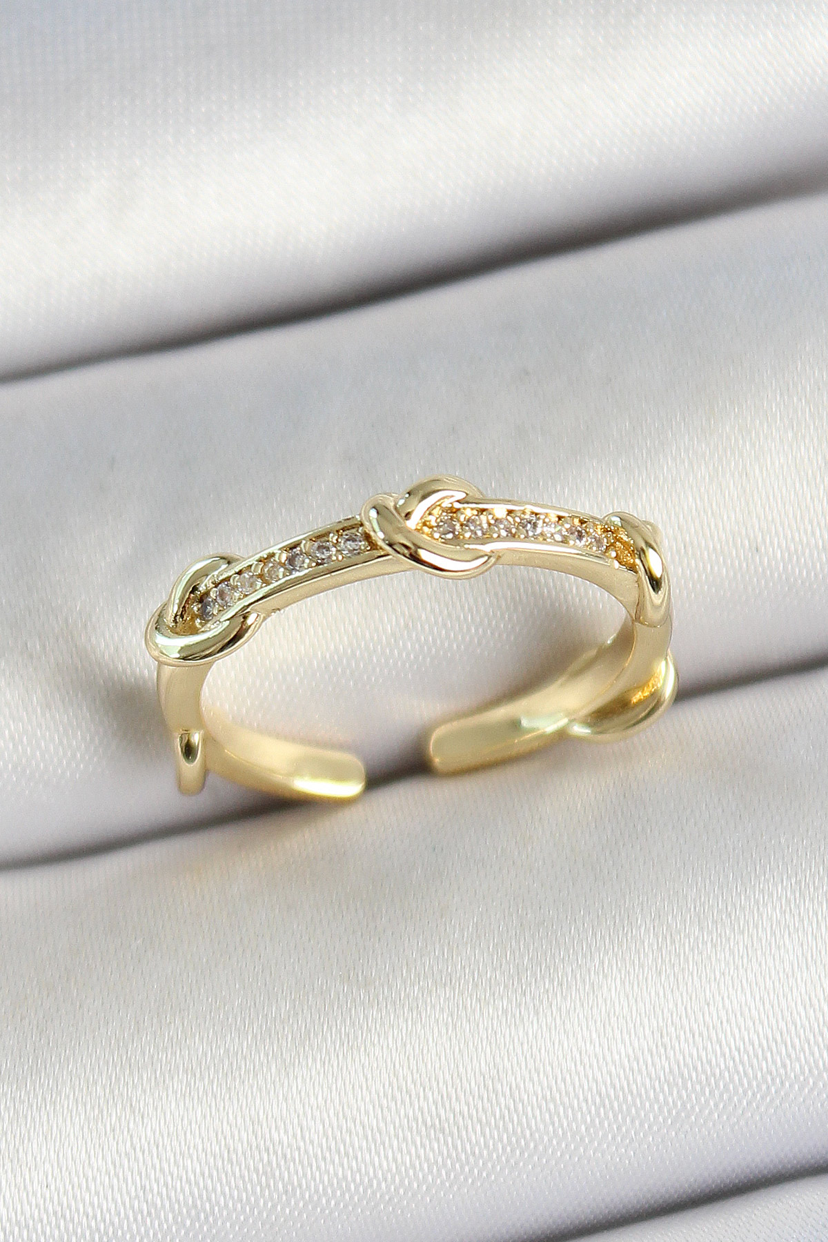 Pirinç Düğüm Figürlü Zirkon Taşlı Gold Renk Ayarlanabilir Kadın Yüzük - TJ-BYK3776