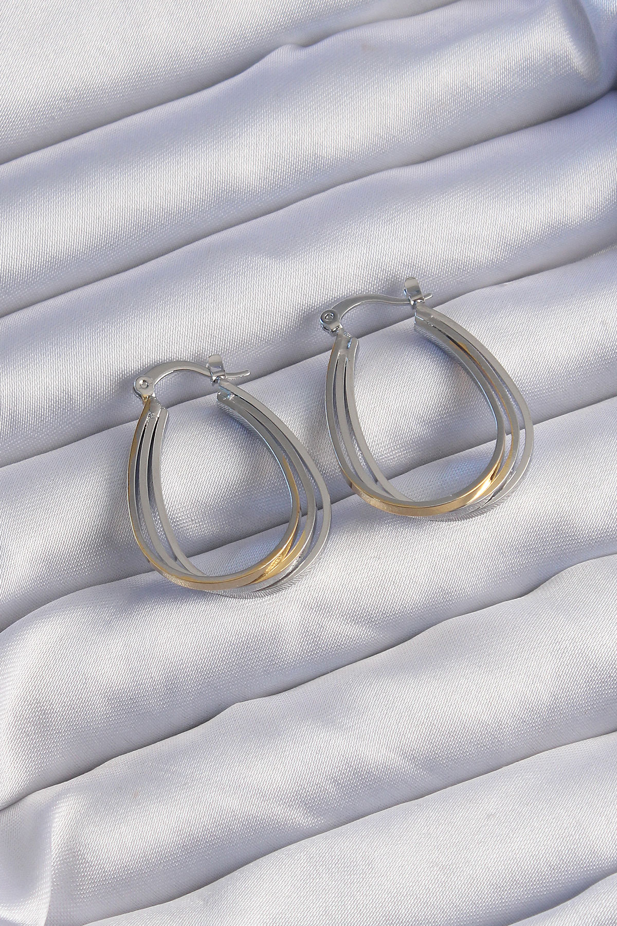 Pirinç Gold Gümüş Renkli Oval Çoklu Görünümlü Küpe - TJ-BKP9223