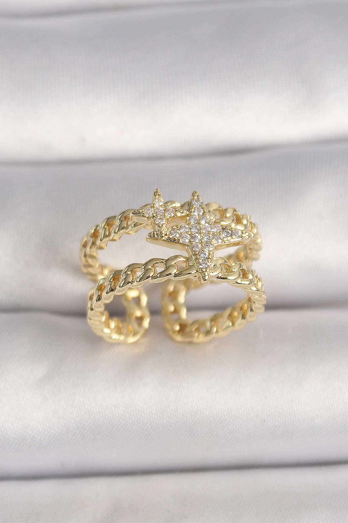 Pirinç Gold Renk 2'Li Zincir Zirkon Taşlı Yıldız Figür Kadın Kolye - TJ-BYK3594
