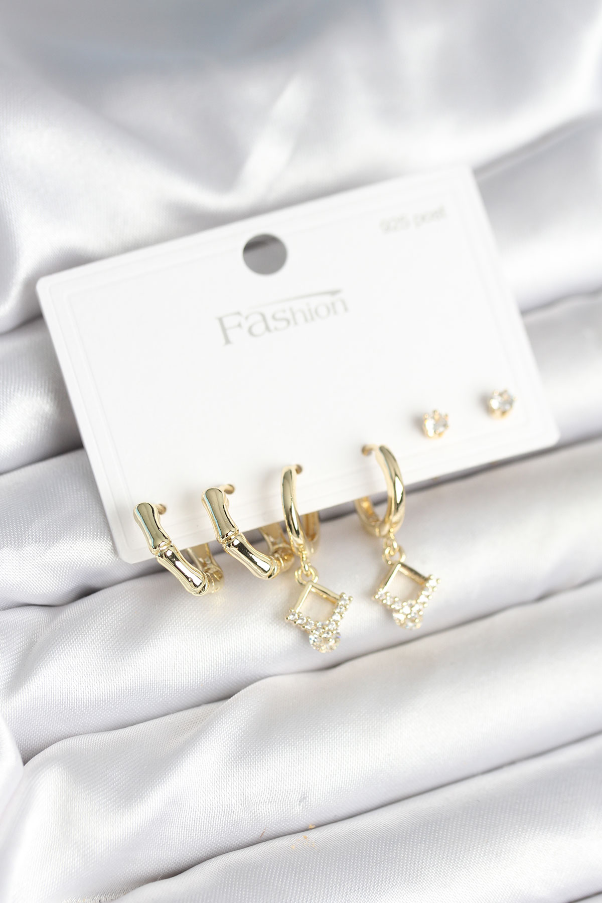 Pirinç Gold Renk 925 Ayar Gümüş Çivili Kadın Küpe Seti - TJ-BKP11260