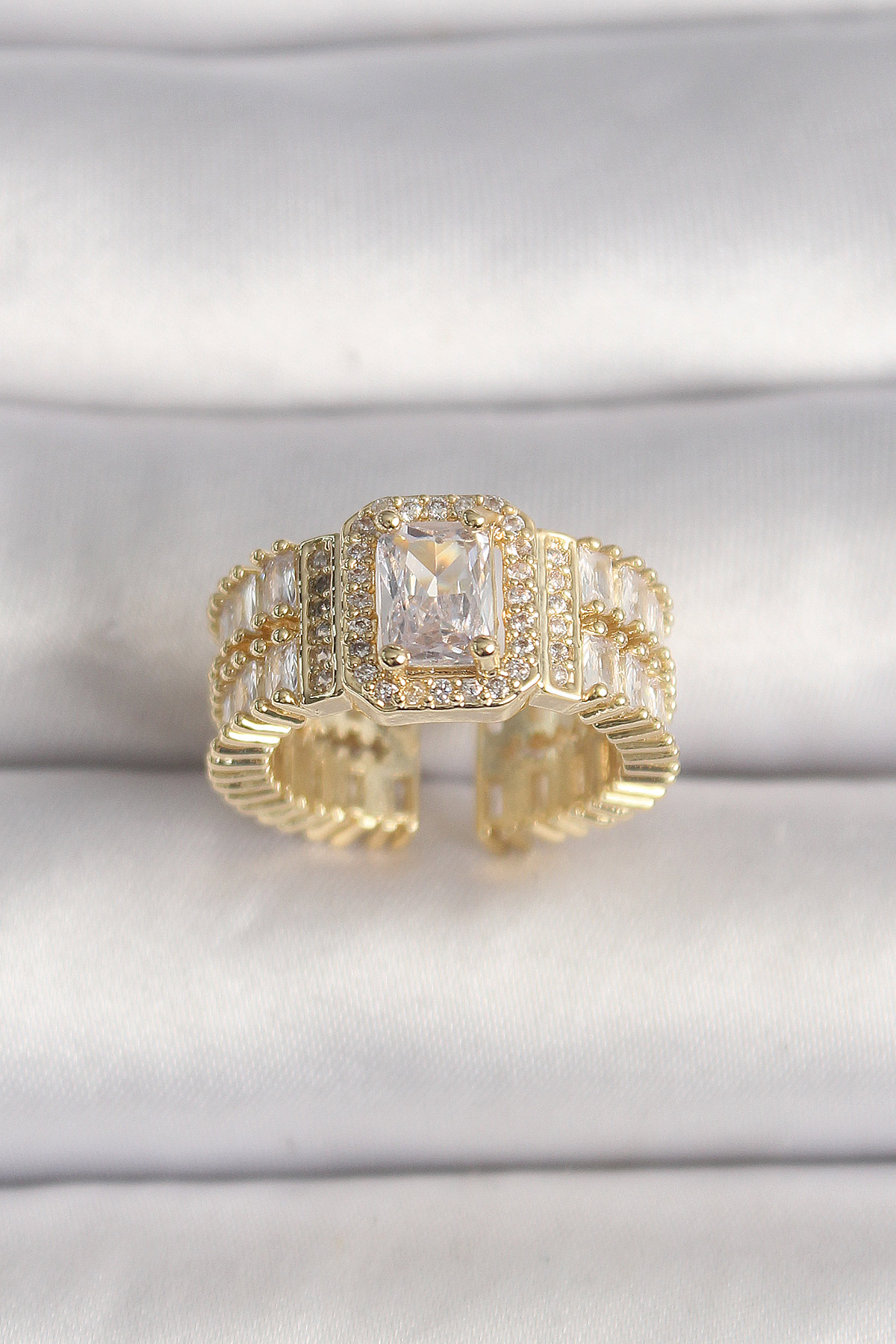 Pirinç Gold Renk Ayarlanabilir Baget Zirkon Taş Model Kadın Yüzük - TJ-BYK3589