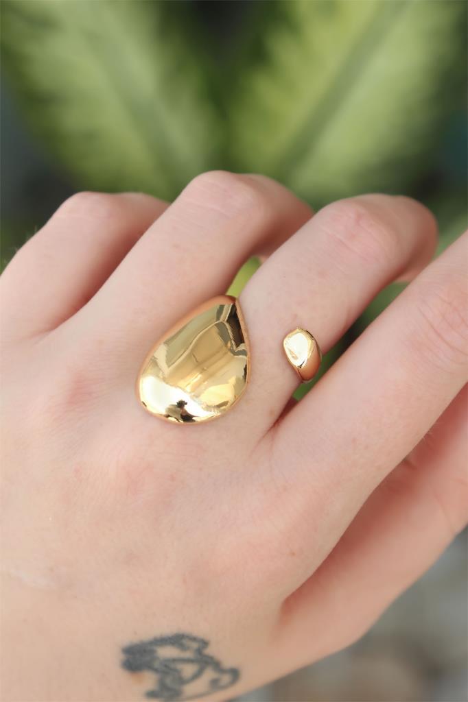 Pirinç Gold Renk Ayarlanabilir İri Bombeli Yüzük - TJ-BYK3178
