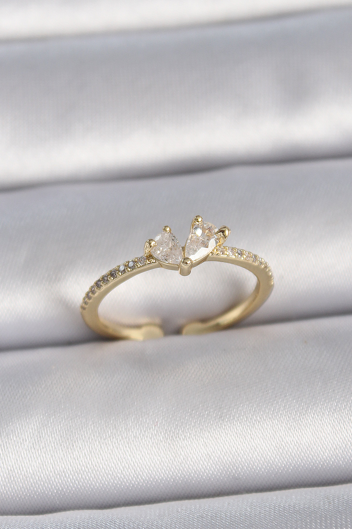 Pirinç Gold Renk Ayarlanabilir Zirkon Taşlı Kalp Model Kadın Yüzük - TJ-BYK3406