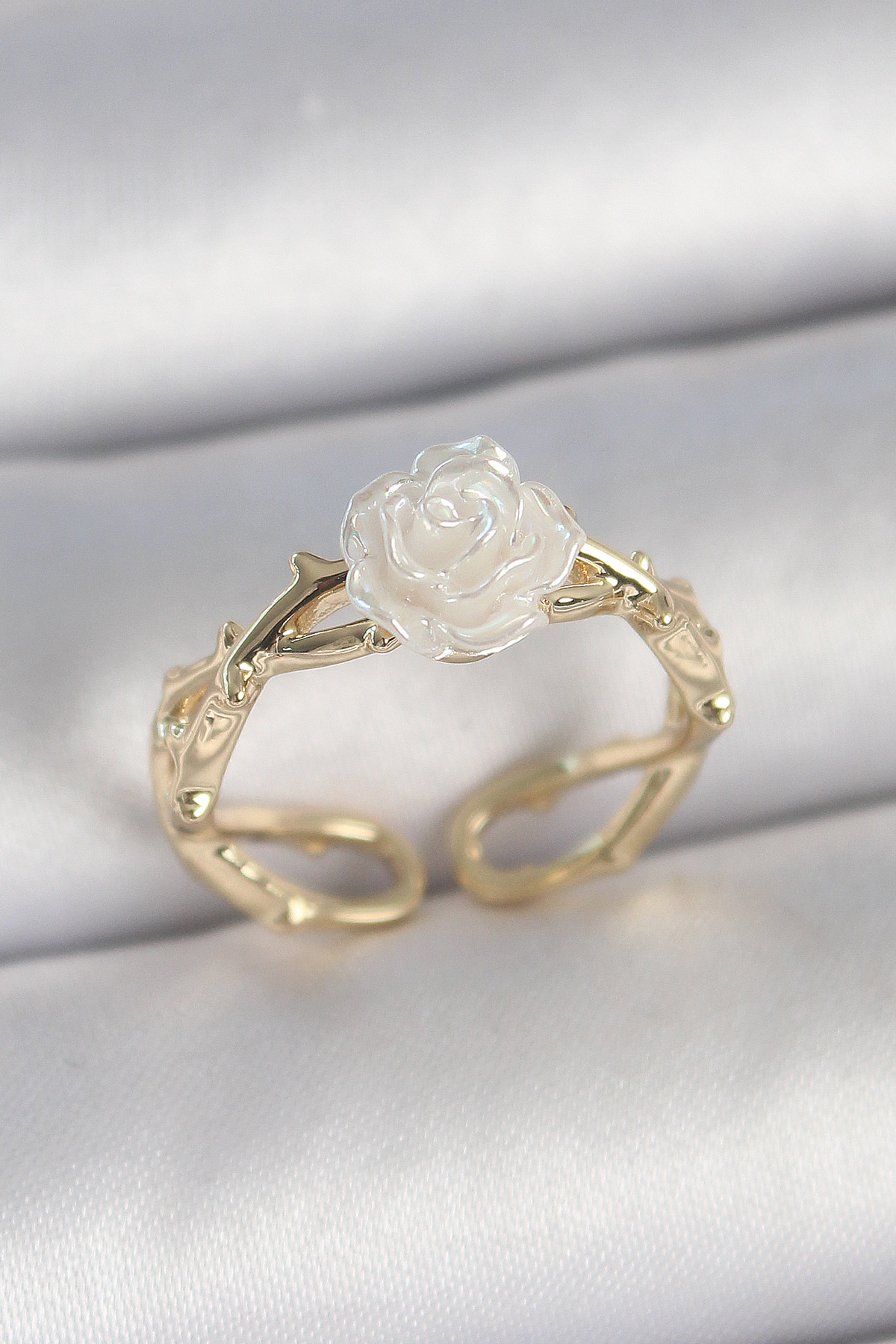Pirinç Gold Renk Beyaz Gül Model Ayarlanabilir Kadın Yüzük - TJ-BYK3731
