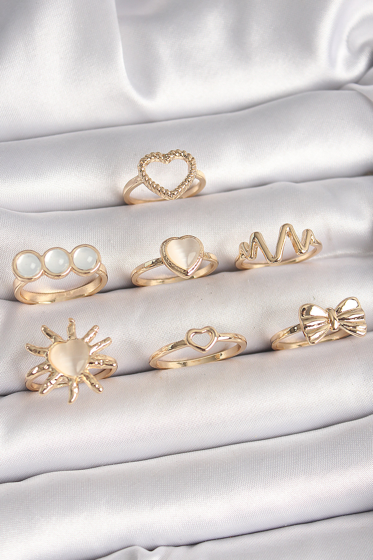 Pirinç Gold Renk Beyaz Mineli Kalp Model Kurdele Detay Kadın Küpe Kombini - TJ-BYK3673