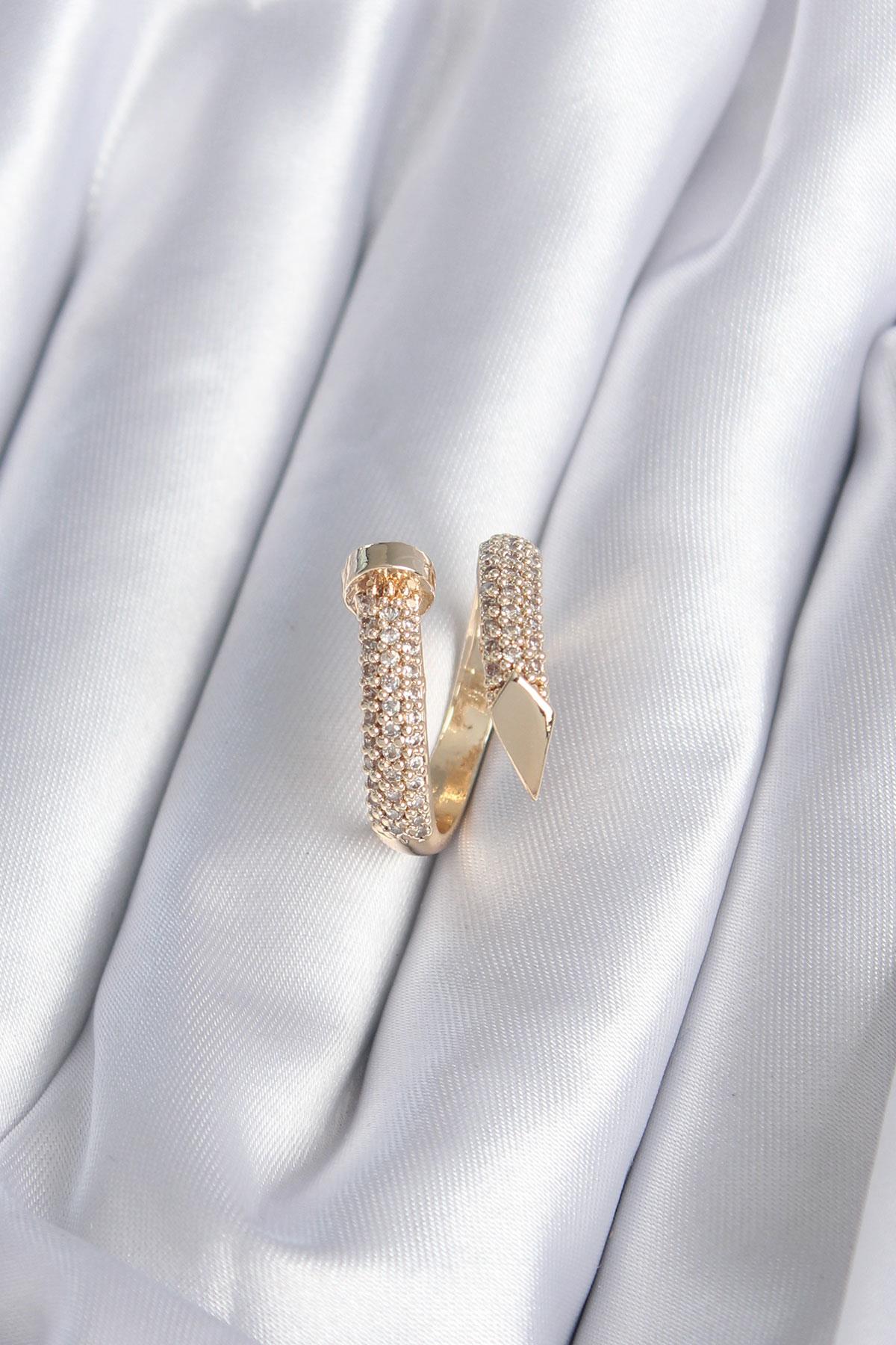Pirinç Gold Renk Çivi Model Zirkon Taşlı Kadın Yüzük - TJ-BYK2878