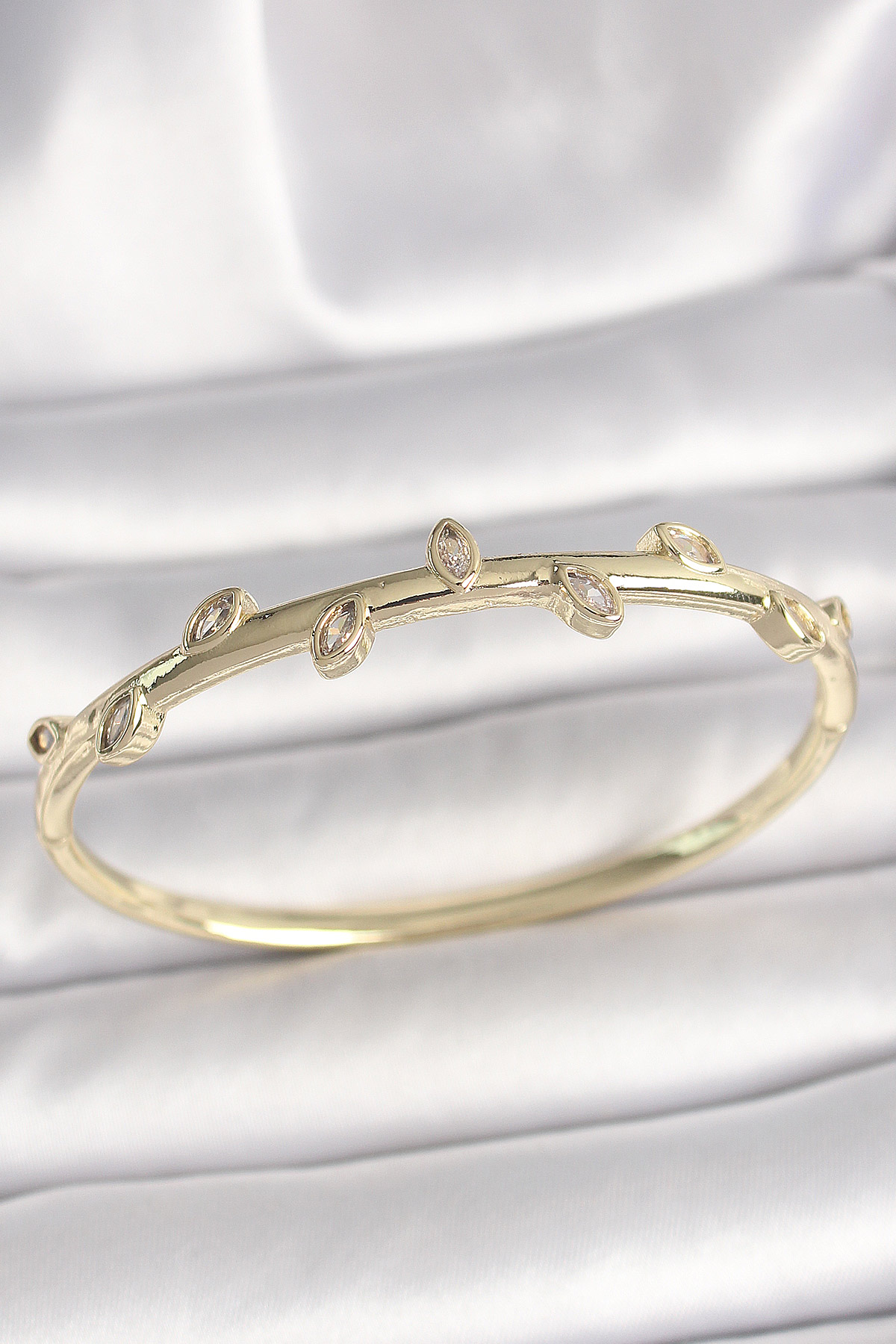 Pirinç Gold Renk Damla Zirkon Taşlı Kadın Kelepçe - TJ-BB6863