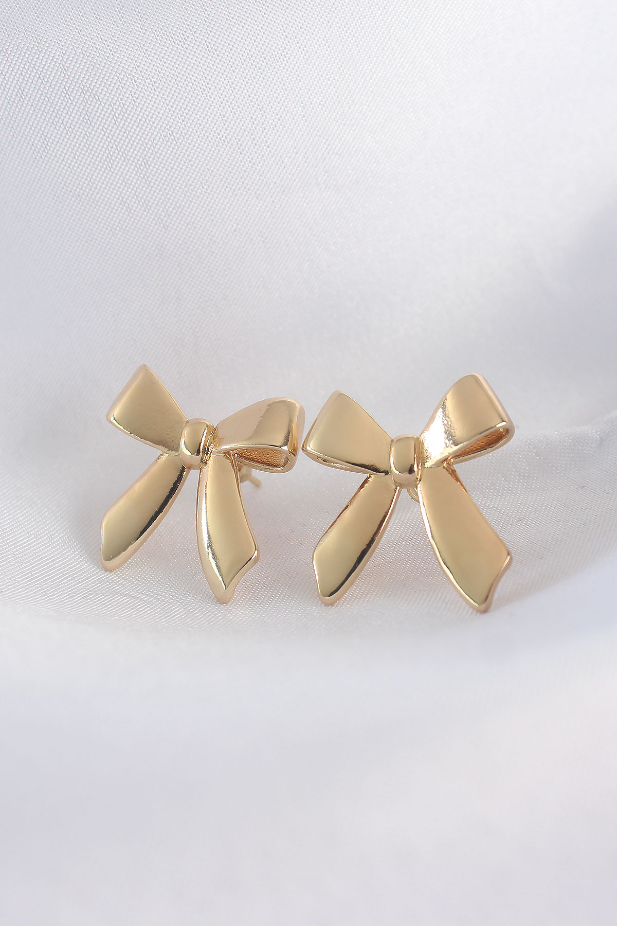 Pirinç Gold Renk Düz Plaka Fiyonk Küpe - TJ-BKP8936