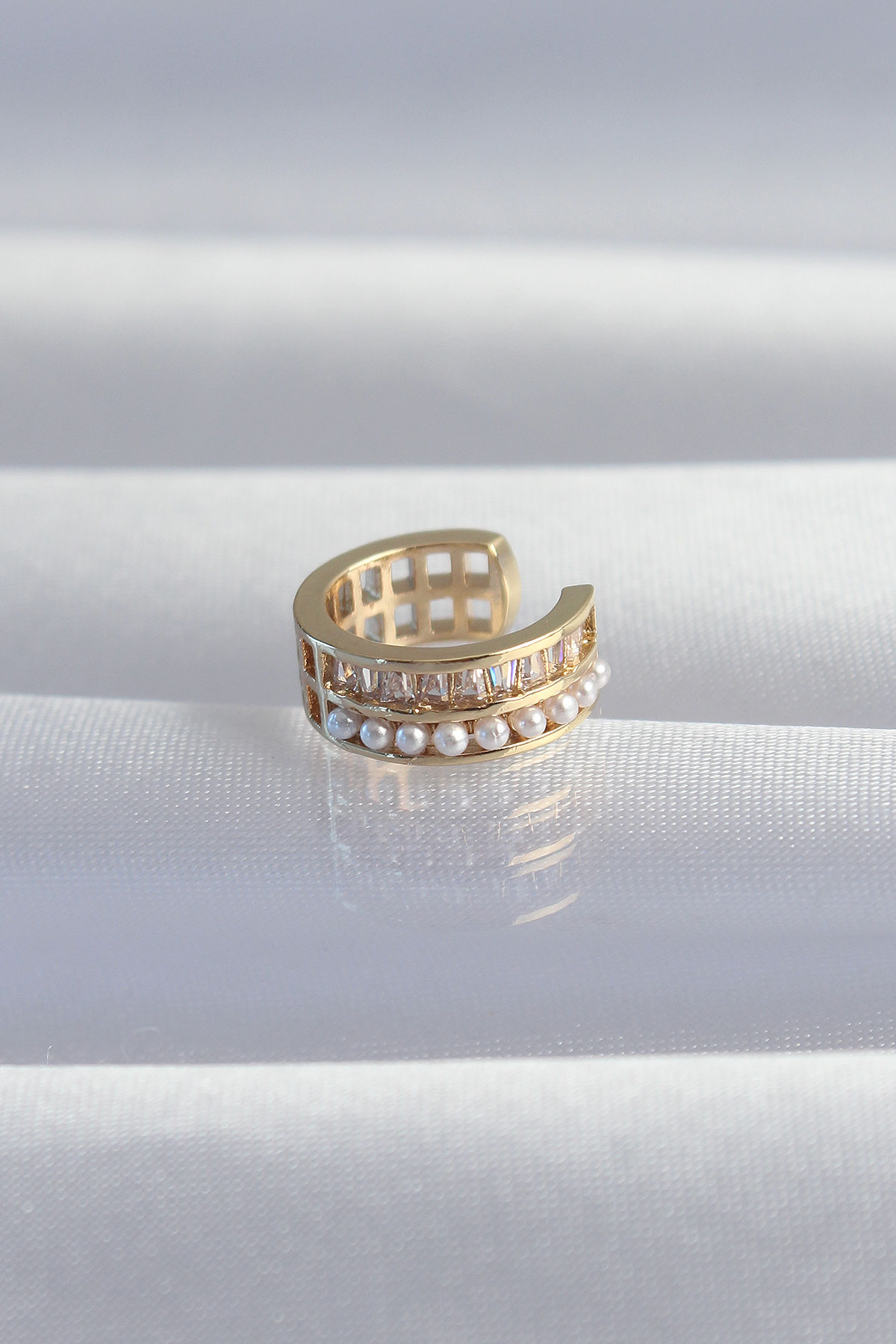 Pirinç Gold Renk İncili Baget Taşlı Earcuff Küpe - TJ-BKP9339