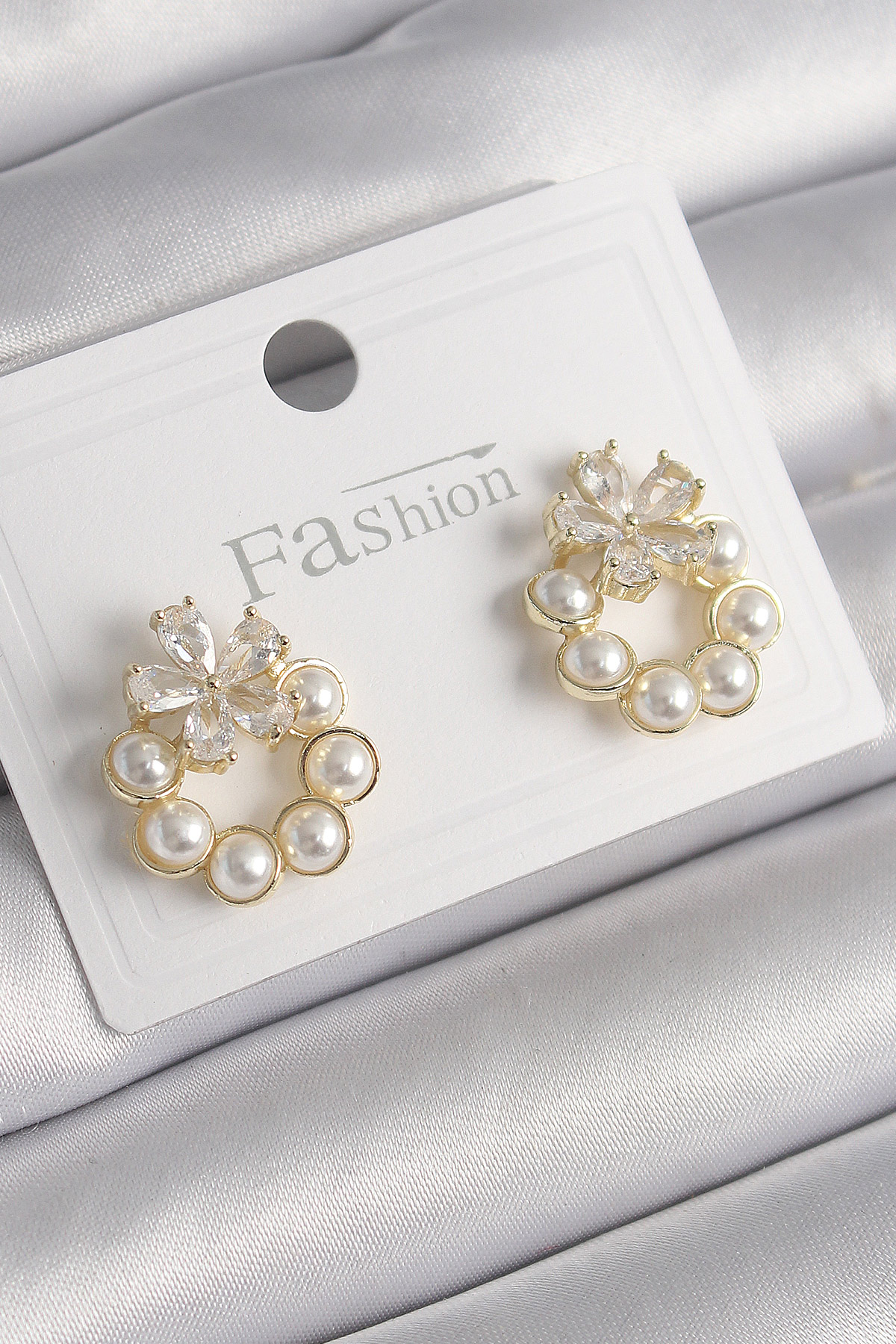 Pirinç Gold Renk İncili Halka Model Zirkon Taşlı Kelebek Model Kadın Küpe - TJ-BKP9997