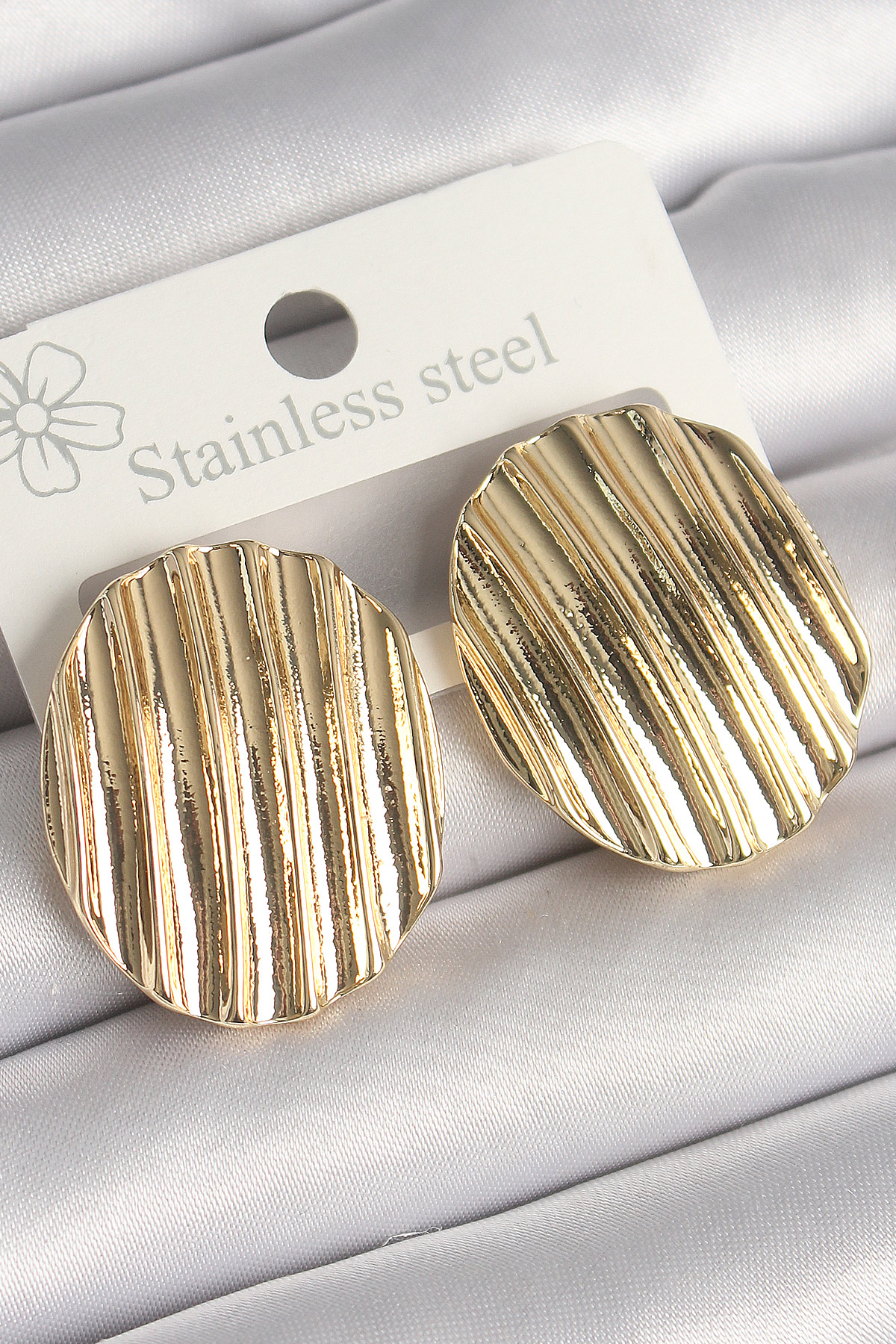 Pirinç Gold Renk İşlemeli Daire Plaka Model Kadın Küpe - TJ-BKP10244