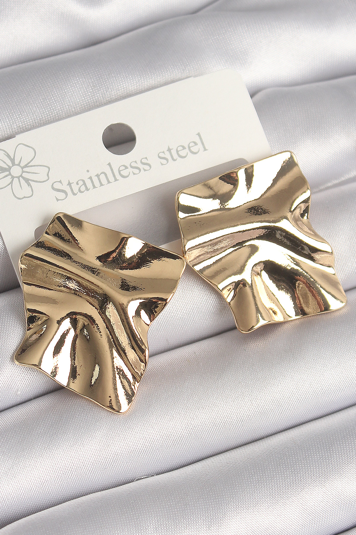 Pirinç Gold Renk İşlemeli Kare Plaka Model Kadın Küpe - TJ-BKP10252