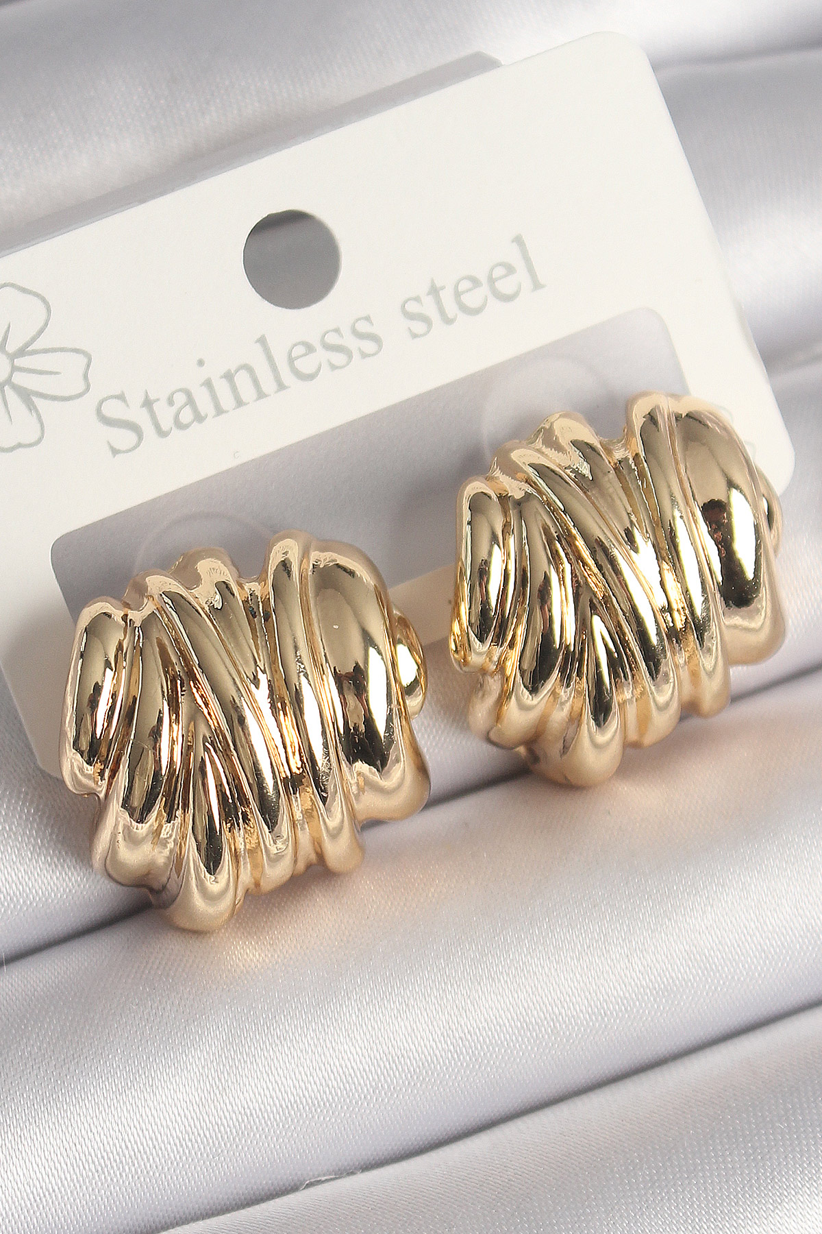 Pirinç Gold Renk İşlemeli Yarım Halka Model Kadın Küpe - TJ-BKP10251