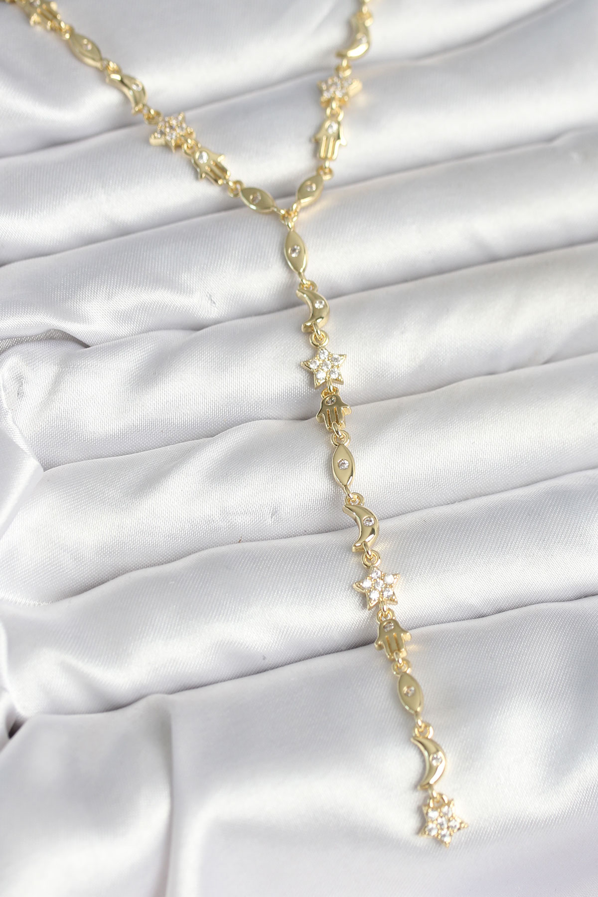 - Ürün materyali pirinçtir.- Ürün zincir uzunluğu 45cm dir.- Dikkatli kullanımda kararma, renk atma olmaz.- Ayrıca teninizin bijuteri , kaplama ürünleri kullanmaya uygun olması gerekmektedir. (Bazı tenlerin karartma yaptığı unutulmamalıdır.)- Sağlıklı ve mutlu günlerde kullanmanız dileğiyle…