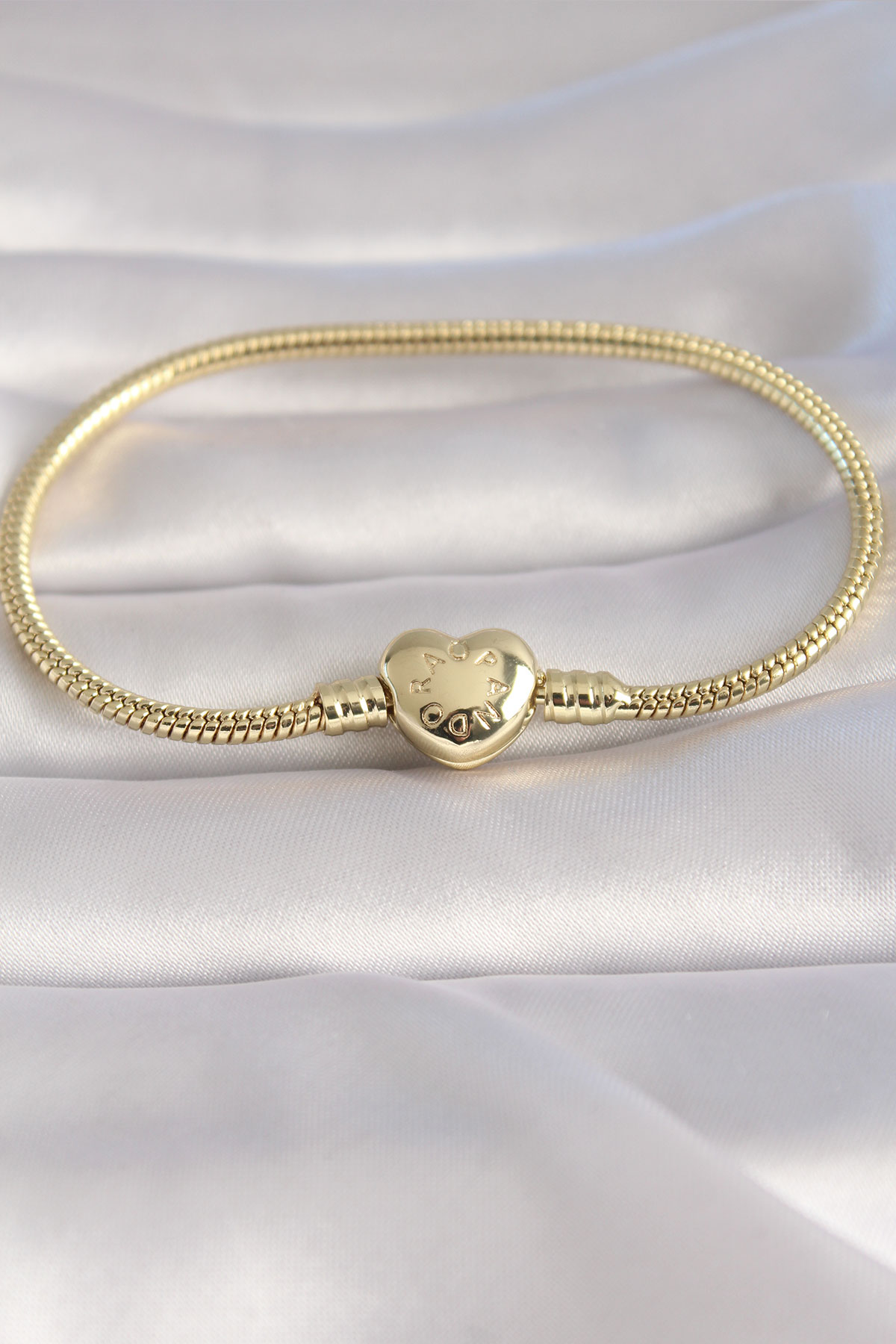 Pirinç Gold Renk Kalp Model İşleme Detay Charm Model Kadın Bileklik - TJ-BB5986