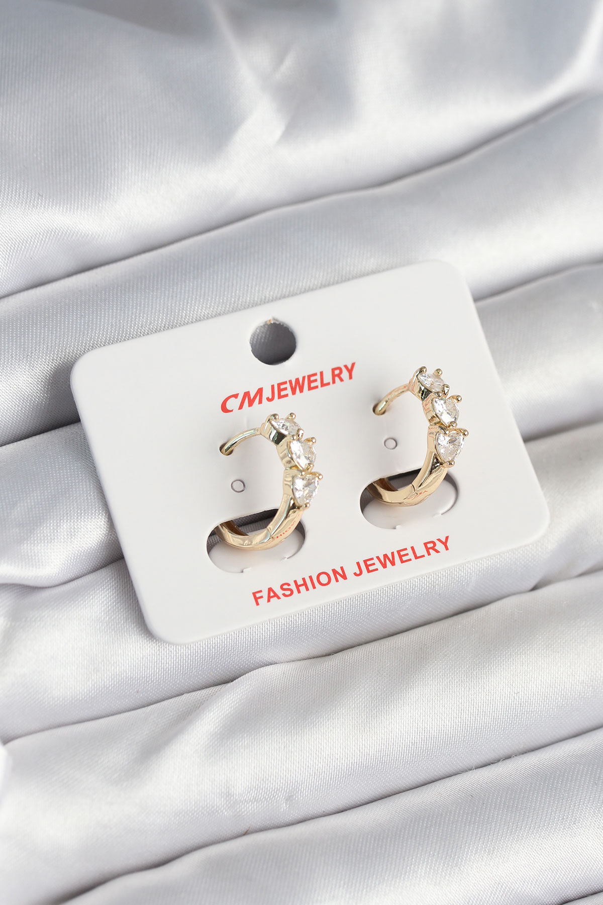 Pirinç Gold Renk Kalpli Zirkon Taşlı Kadın Küpe - TJ-BKP11246