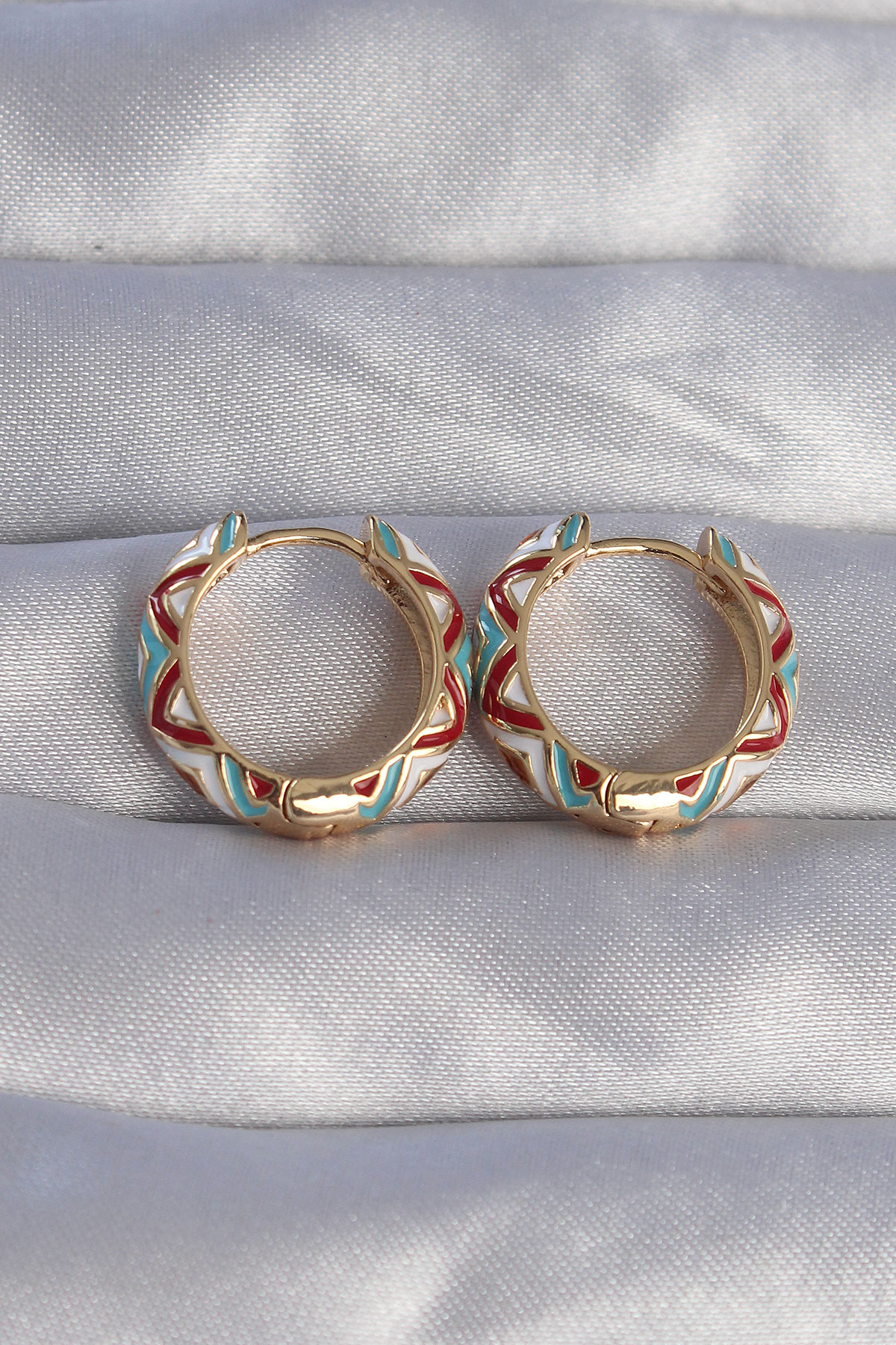 Pirinç Gold Renk Mavili Etnik Desenli Halka Küpe - TJ-BKP9075