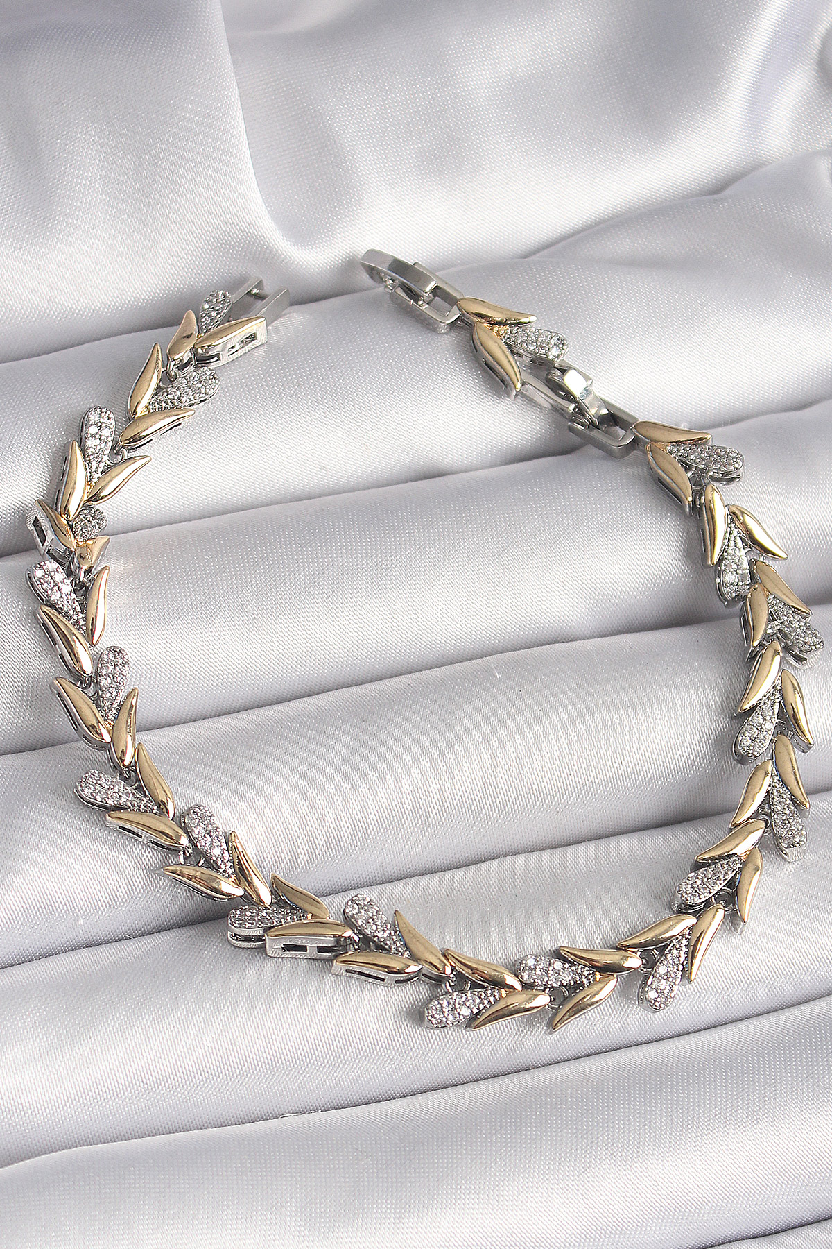 Pirinç Gold Renk Mix Renk Zirkon Taşlı Yaprak Model VIP Seri Kadın Bileklik - TJ-BB6810