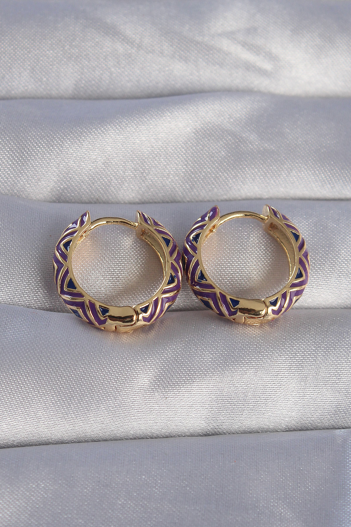 Pirinç Gold Renk Mor Etnik Desenli Halka Küpe - TJ-BKP9076