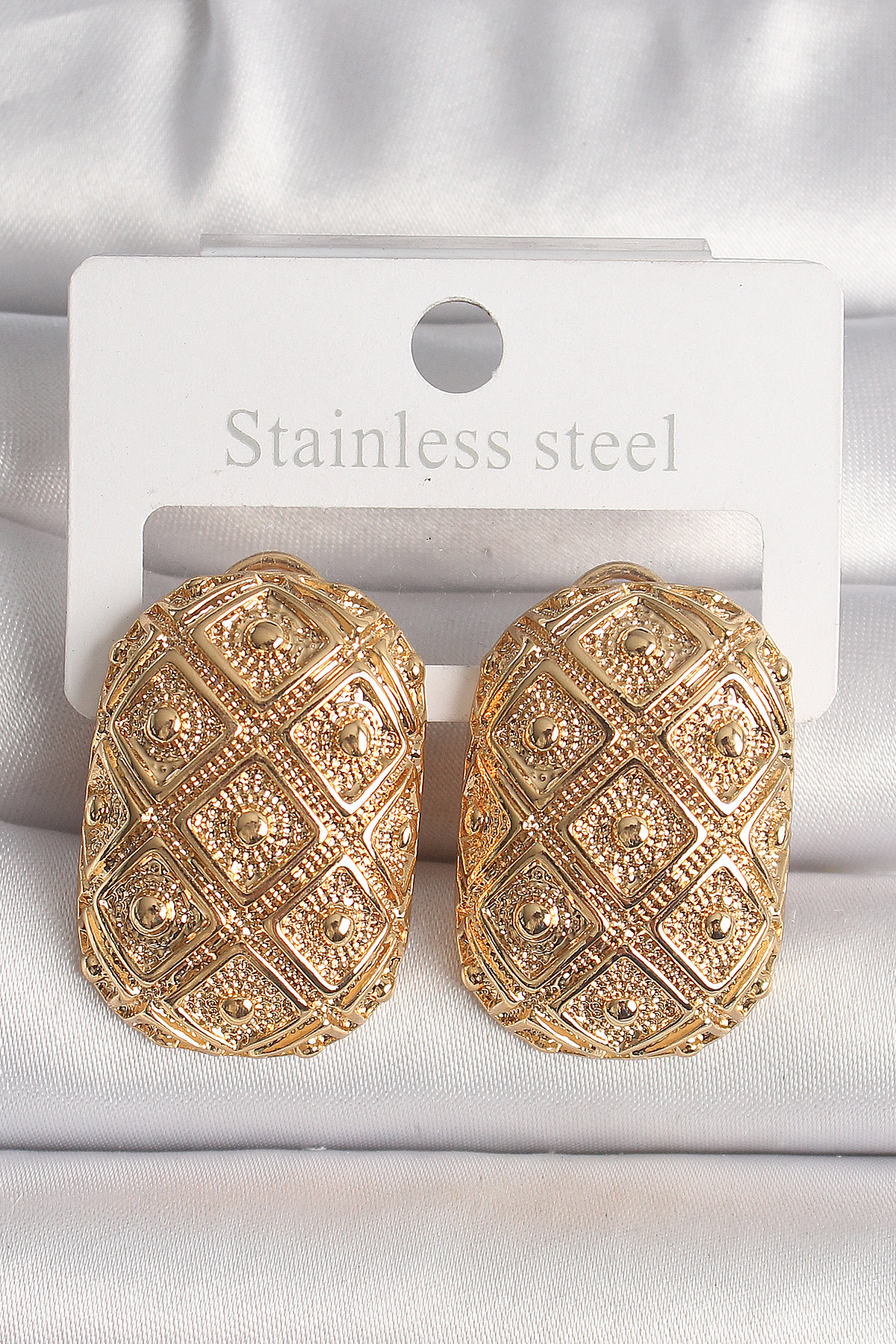 Pirinç Gold Renk Motif İşlemeli Kadın Küpe - TJ-BKP10143