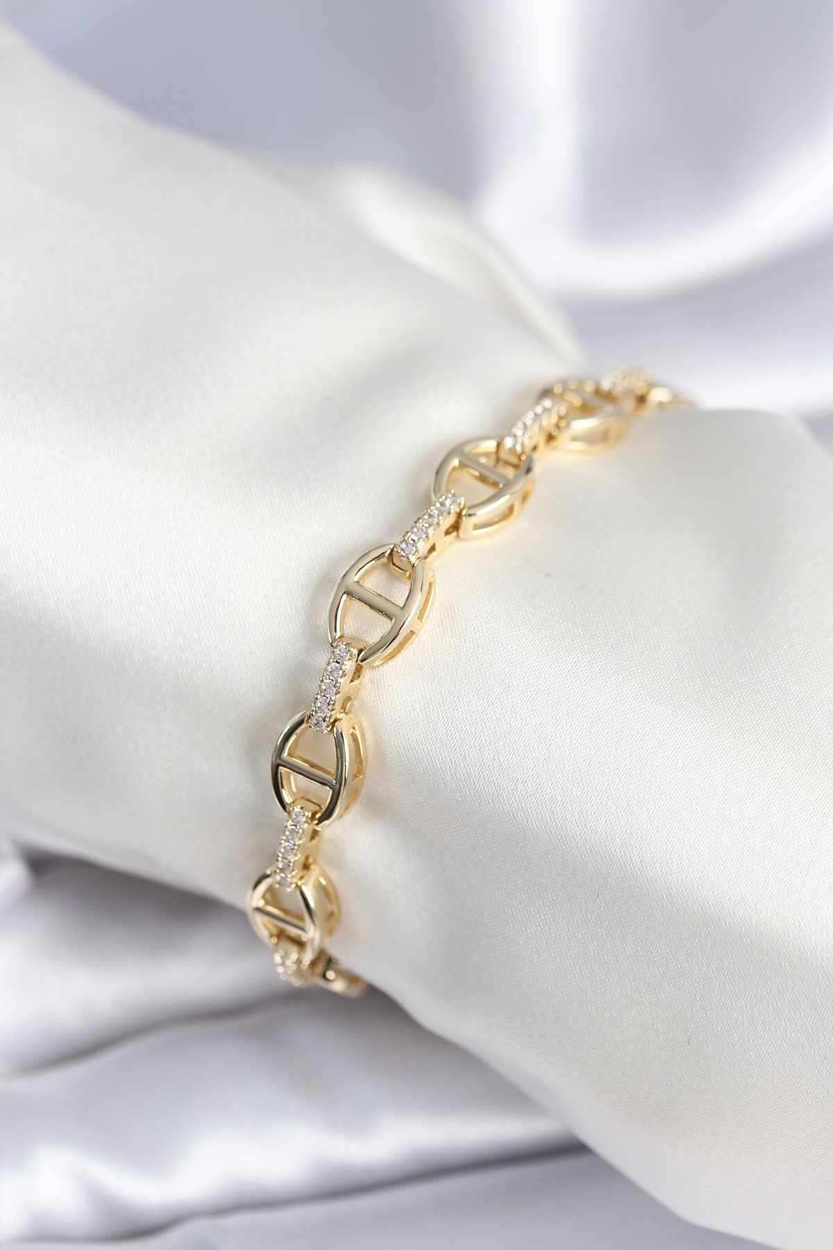 Pirinç Gold Renk Parçalı Zincir Model Kadın Bileklik - TJ-BB7966