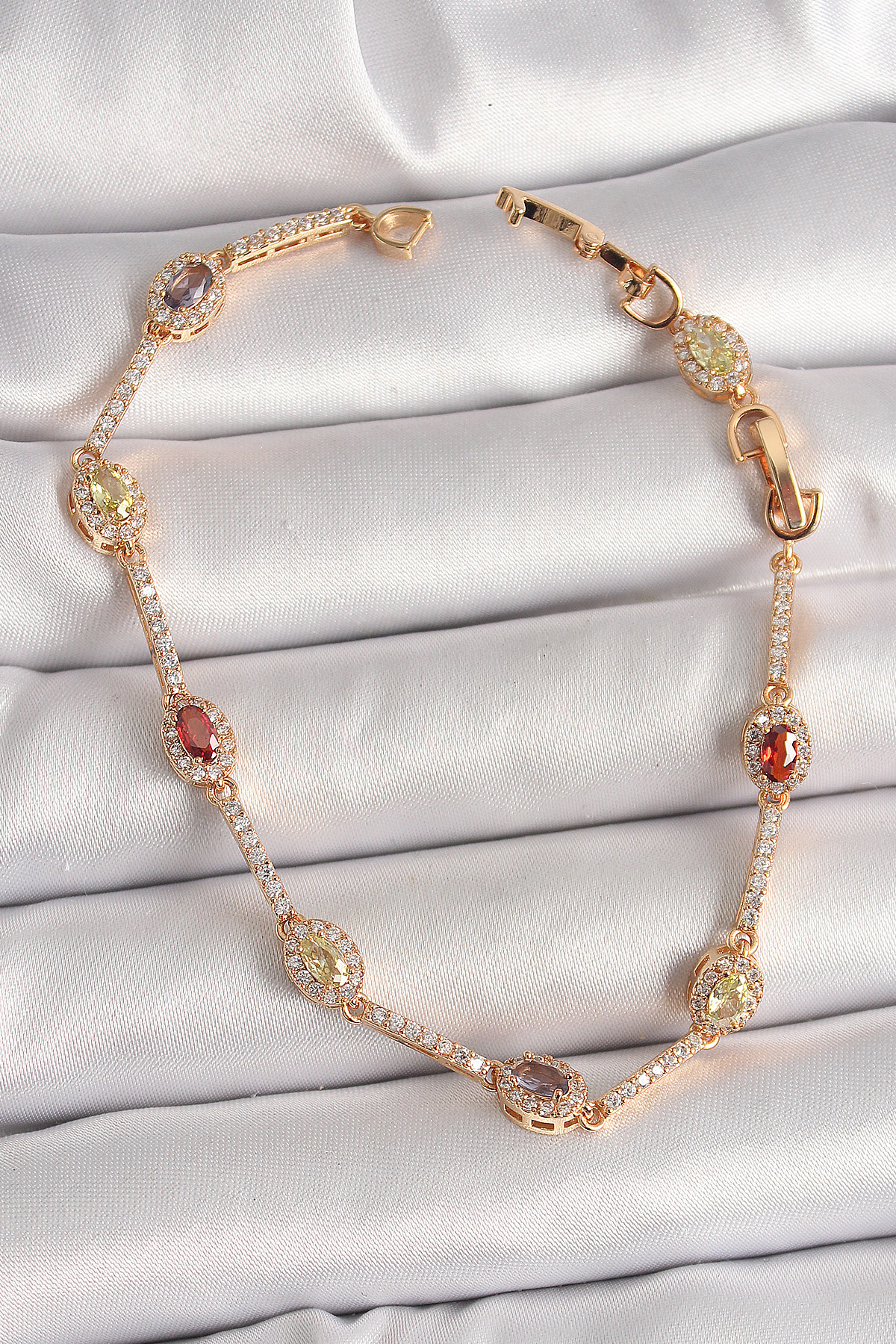 Pirinç Gold Renk Renkli Damla Zirkon Taşlı Kadın Bileklik - TJ-BB6874