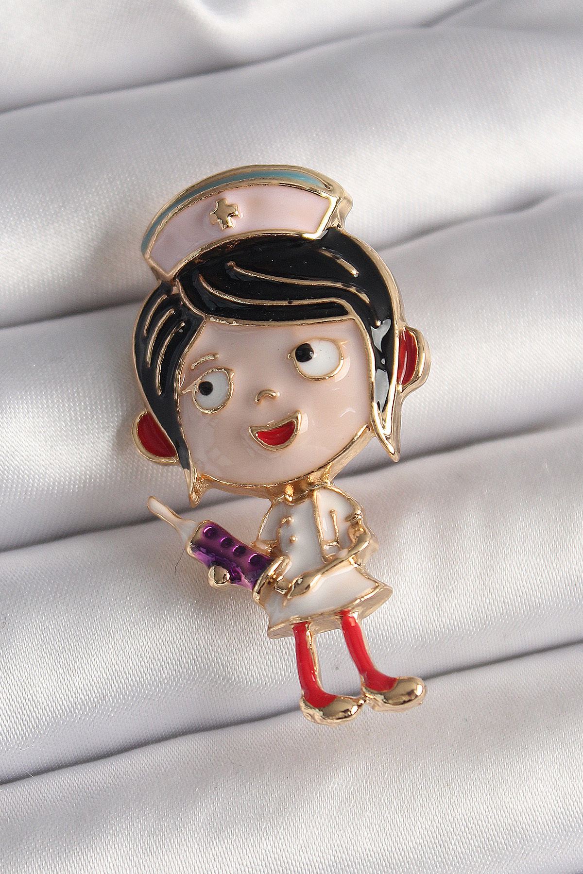 Pirinç Gold Renk Renkli Hemşire Model Kadın Broş - TJ-BR412