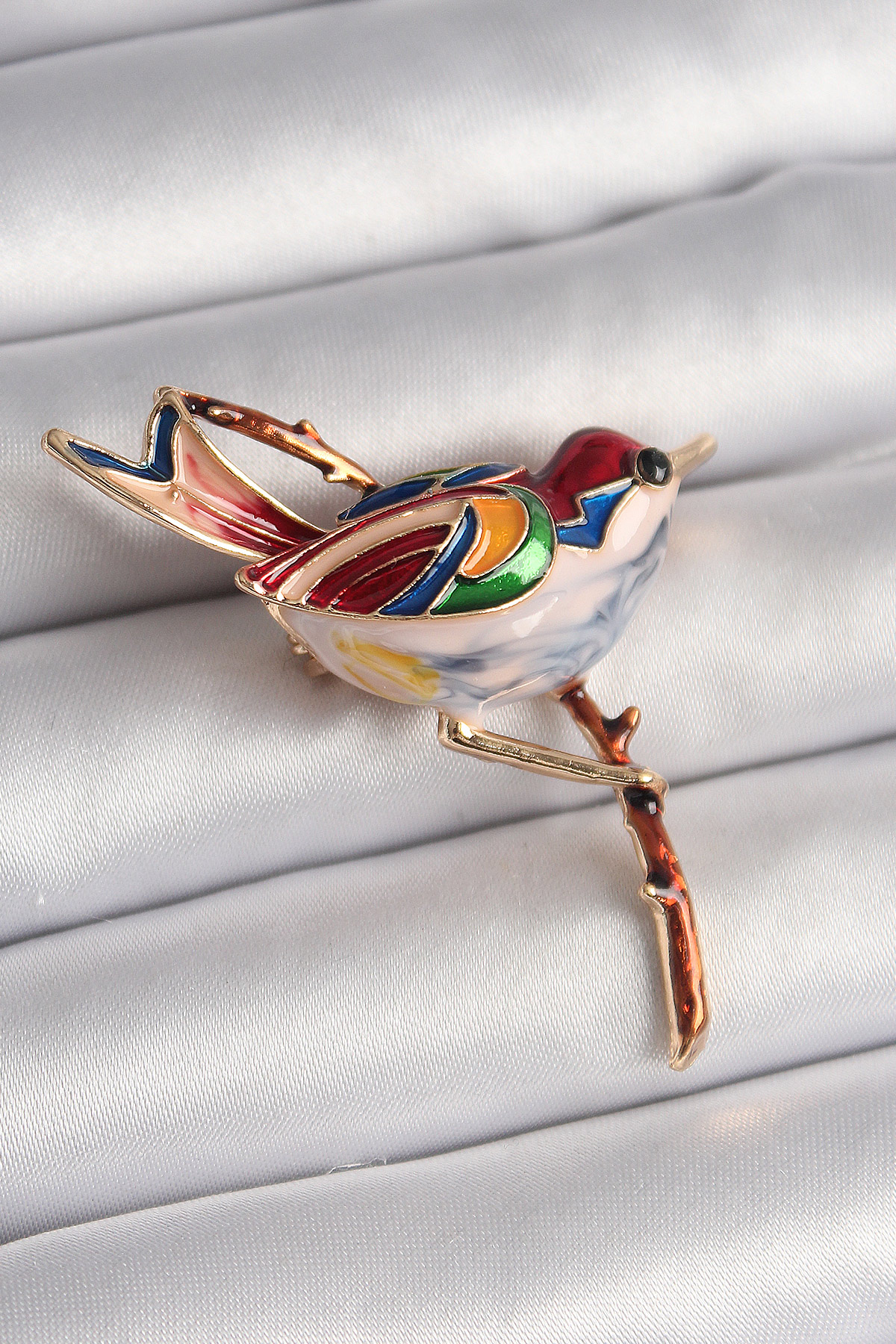 Pirinç Gold Renk Renkli Kuş Model Kadın Broş - TJ-BR401