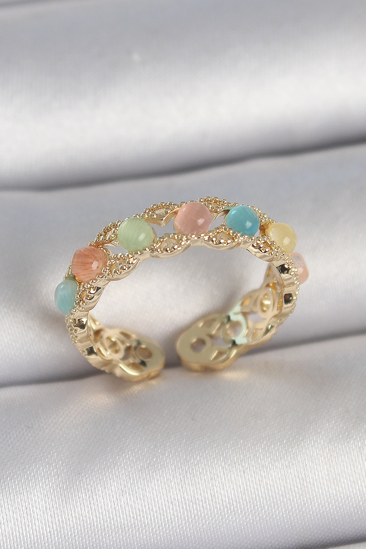Pirinç Gold Renk Renkli Mineli Ayarlanabilir Model Kadın Kolye - TJ-BYK3747