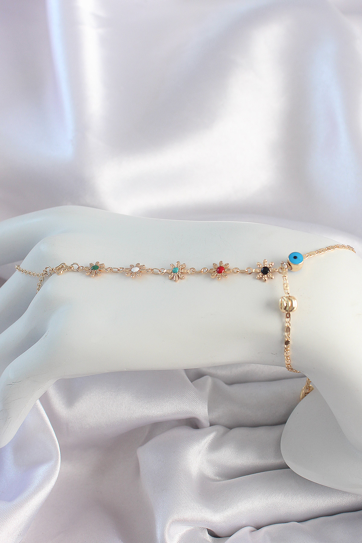 Pirinç Gold Renk Renkli Taşlı Çiçek Model Nazar Boncuk Detay Şahmeran - TJ-SN635