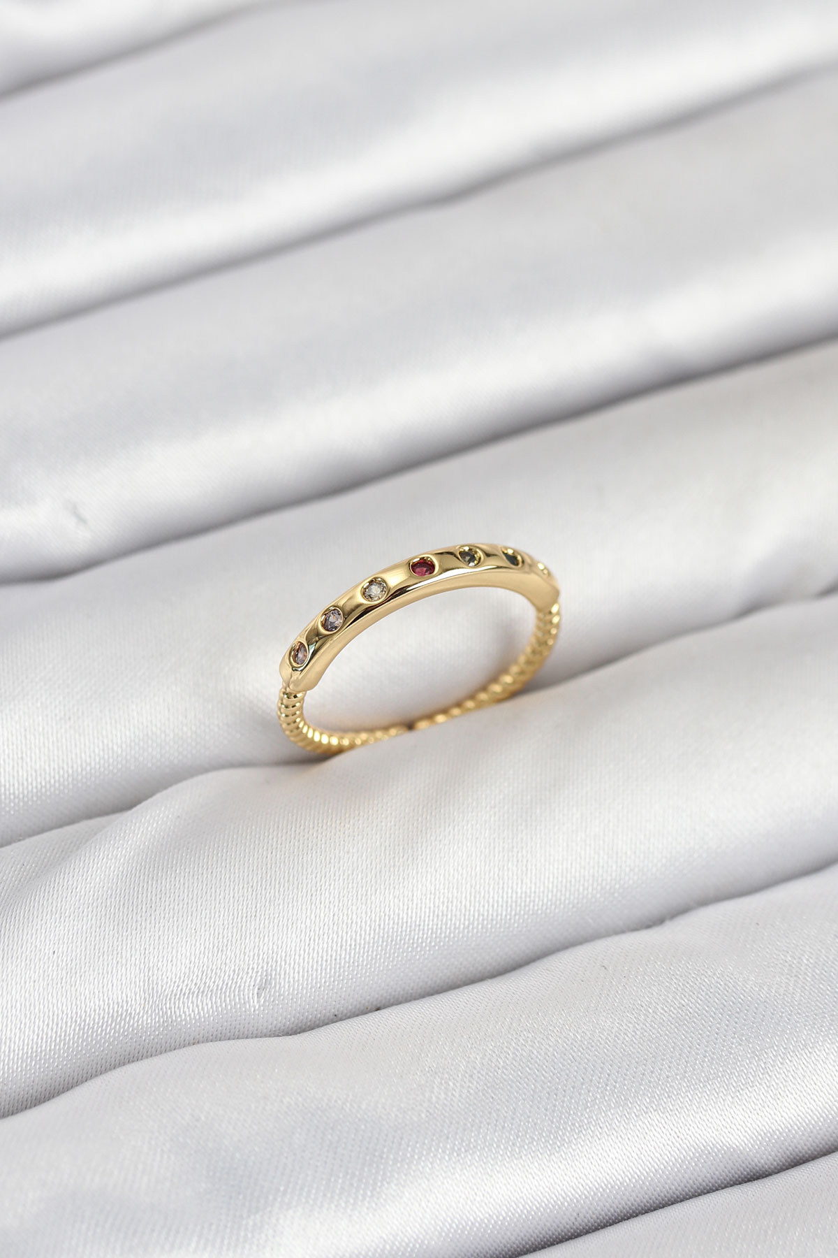 Pirinç Gold Renk Renkli Zirkon Taşlı Kadın Yüzük - TJ-BYK3884