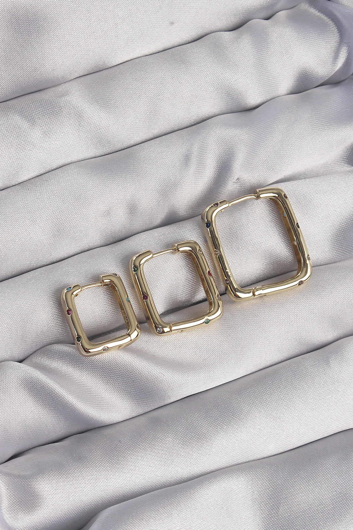 Pirinç Gold Renk Renkli Zirkon Taşlı Kare Model Küpe Seti - TJ-BKP9116