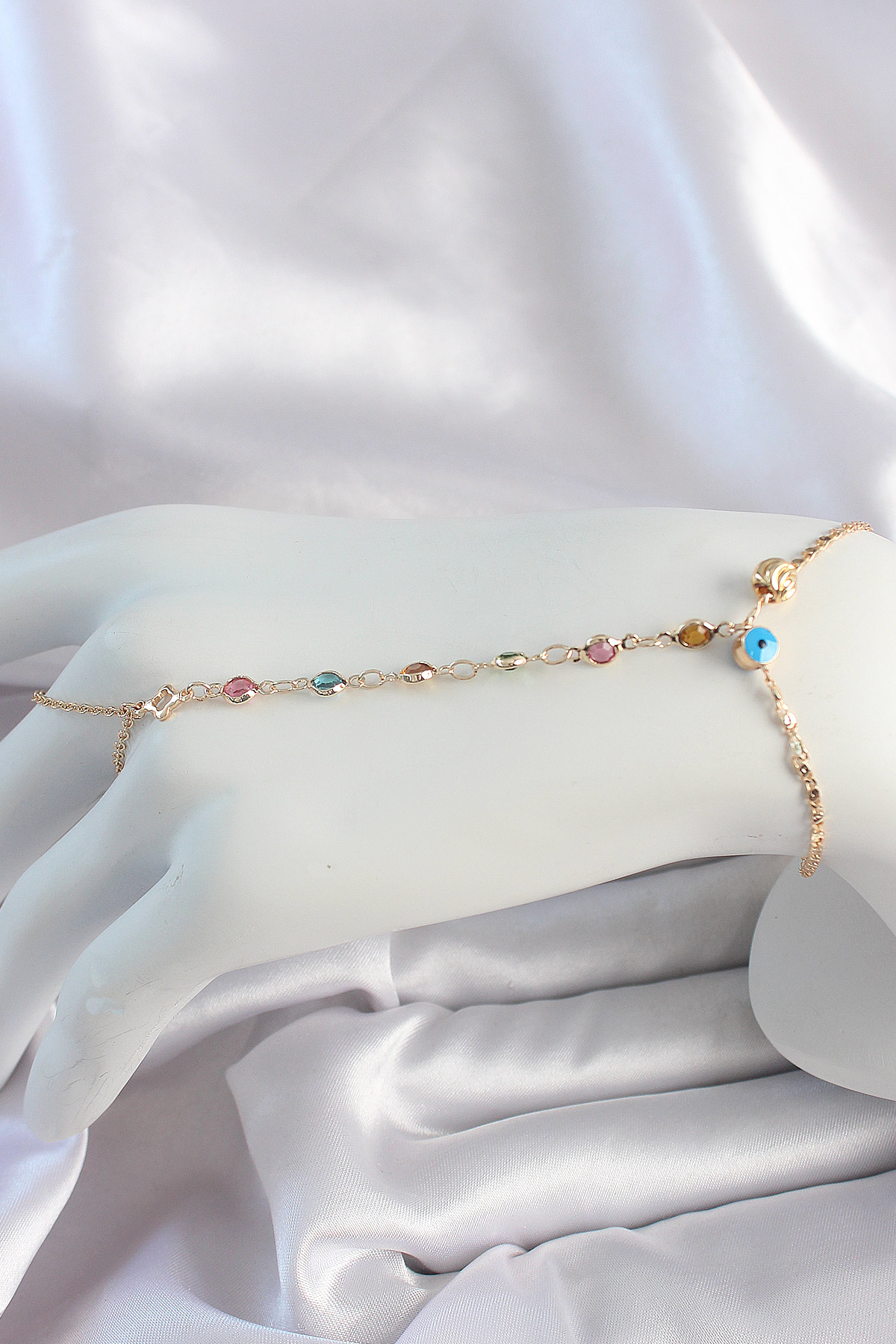 Pirinç Gold Renk Renkli Zirkon Taşlı Nazar Boncuk Detay Şahmeran - TJ-SN634