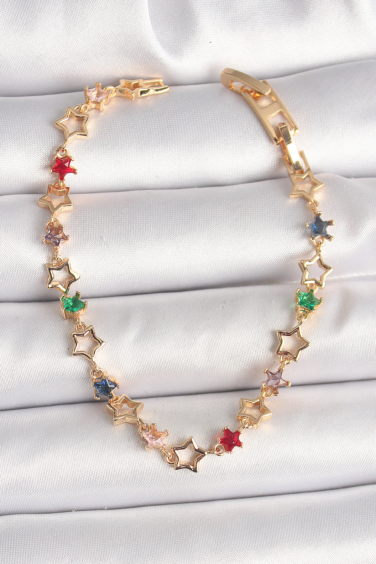 Pirinç Gold Renk Renkli Zirkon Taşlı Yıldız Model Kadın Bileklik - TJ-BB6872