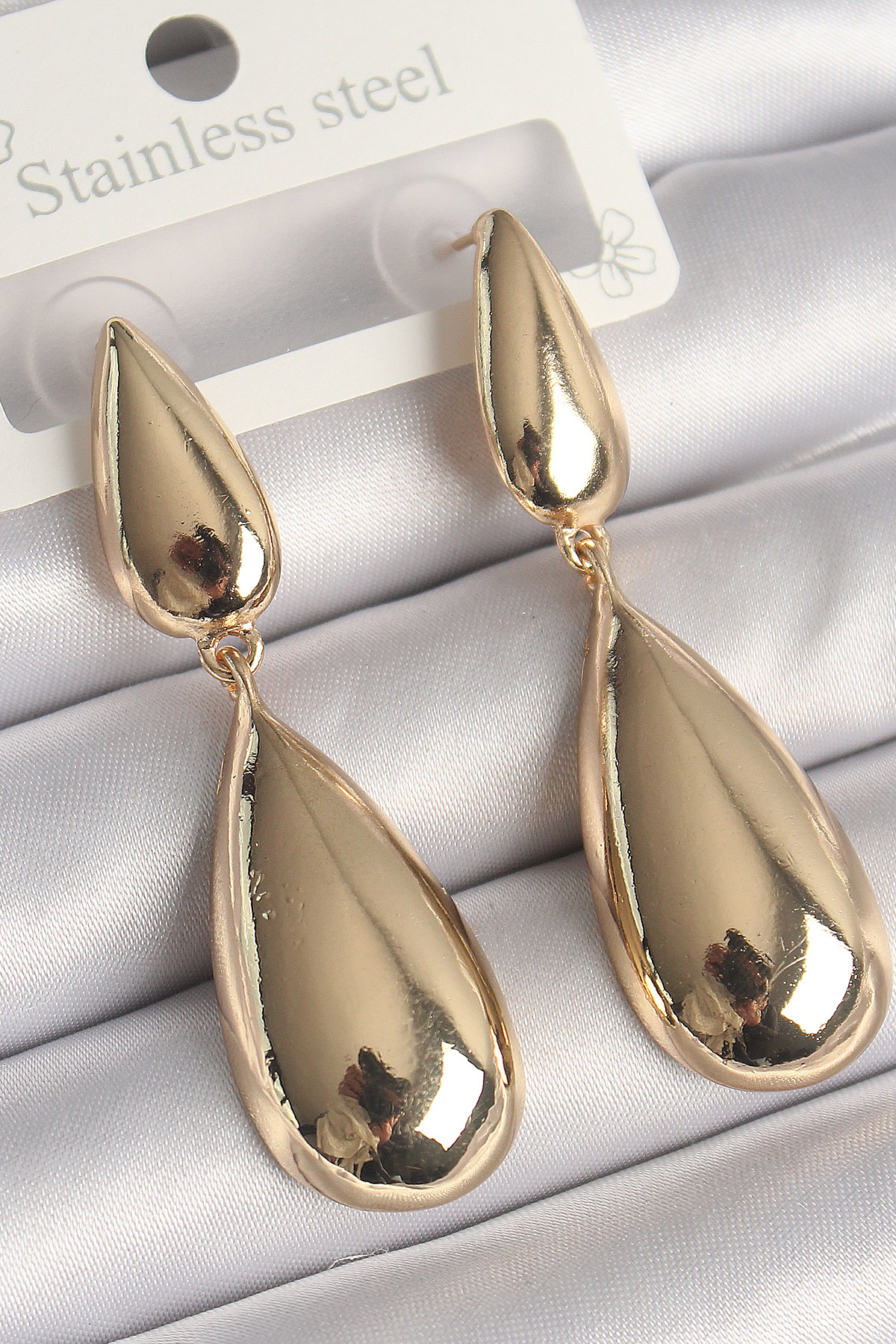 Pirinç Gold Renk Sallantı Damla Model Kadın Küpe - TJ-BKP10263