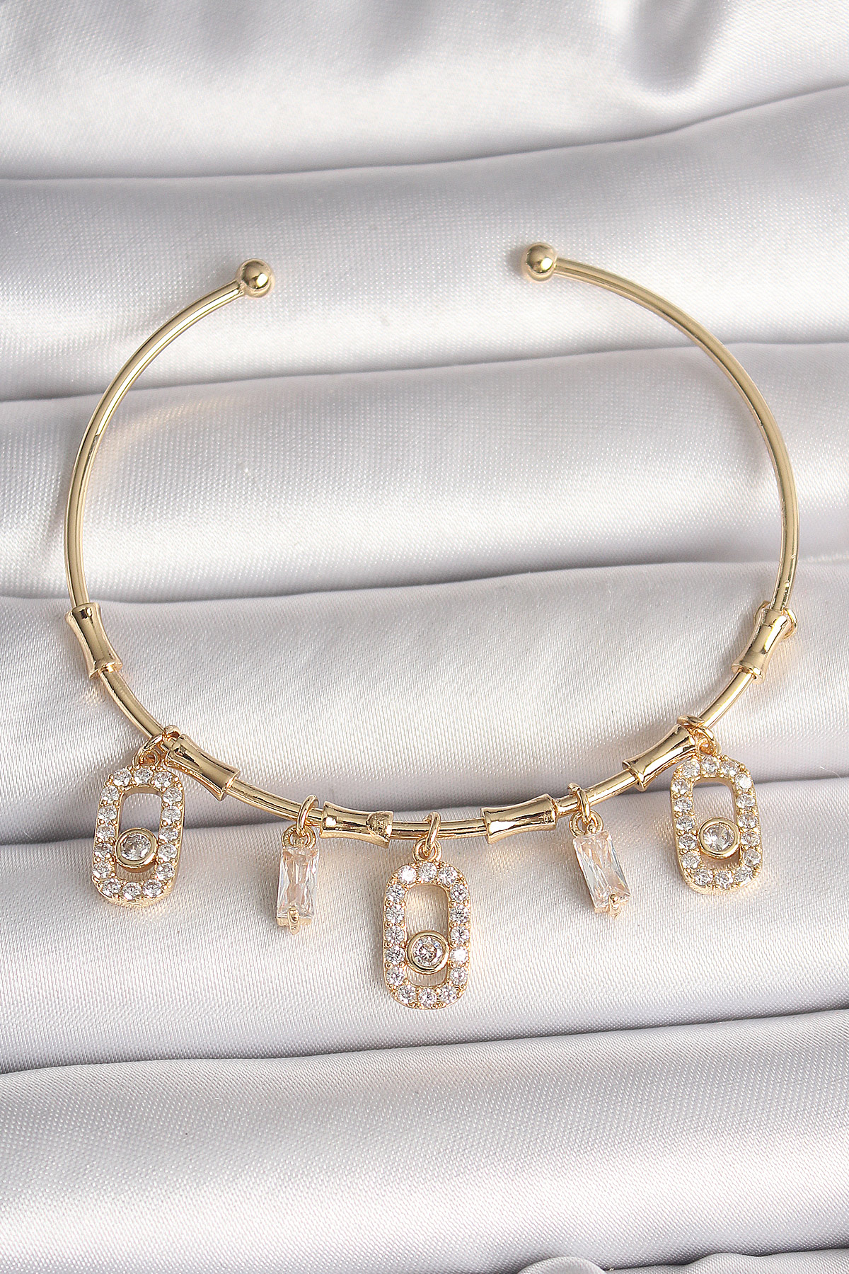 Pirinç Gold Renk Sallantı Zirkon Taşlı Messika Figür Charm Kadın Bileklik - TJ-BB6893