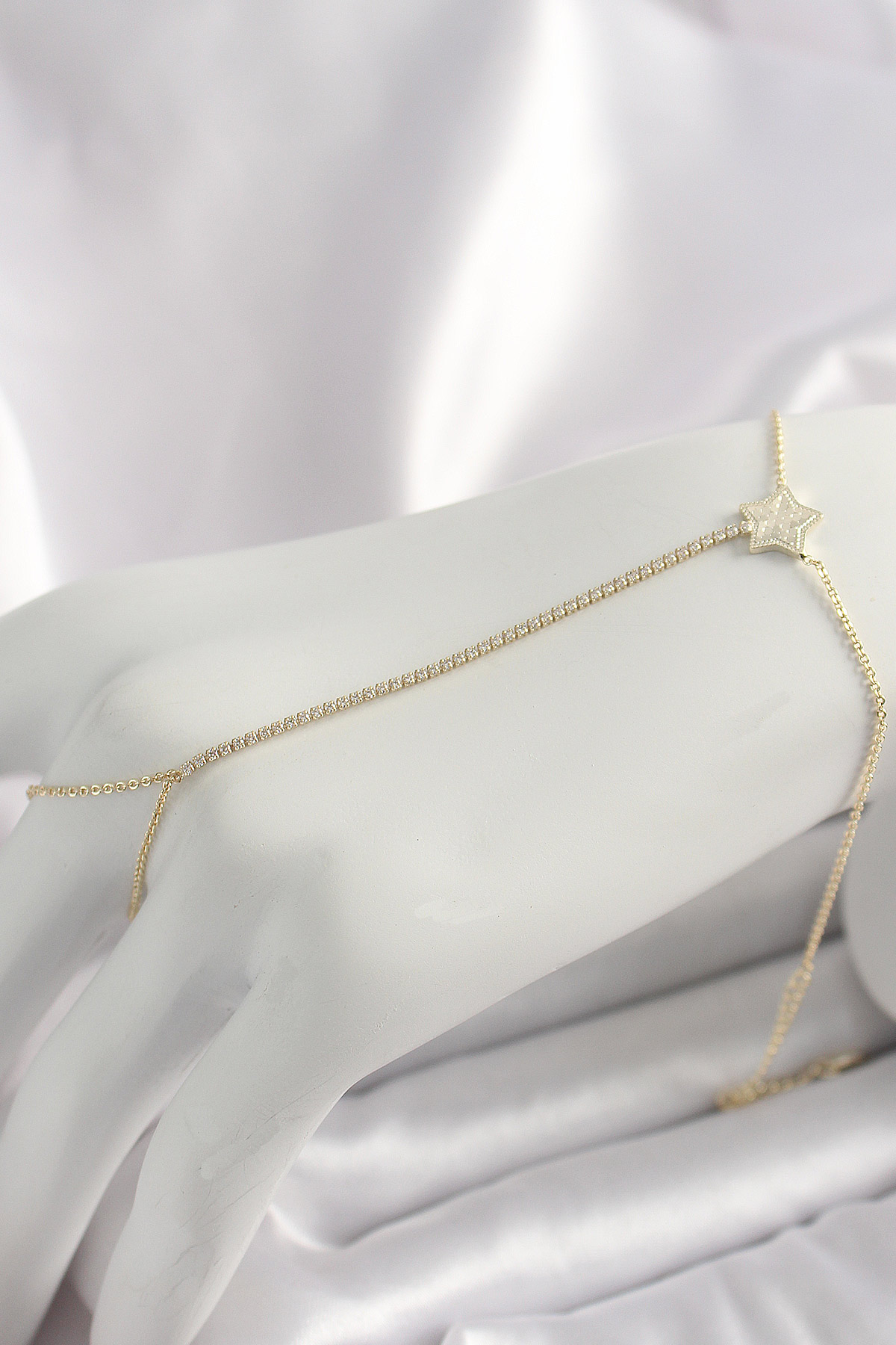 Pirinç Gold Renk Su Yolu Zirkon Taşlı Yıldız Model Kadın Şahmeran - TJ-SN623