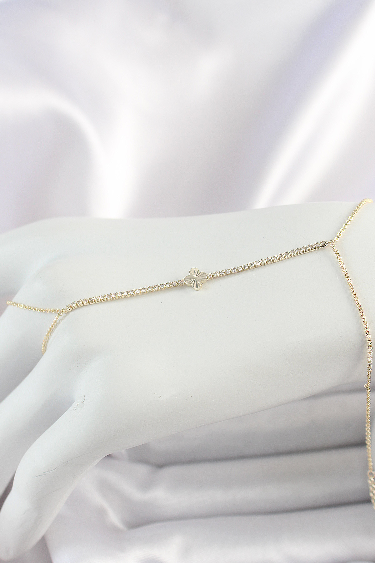 Pirinç Gold Renk Su Yolu Zirkon Taşlı Yonca Model Kadın Şahmeran - TJ-SN625