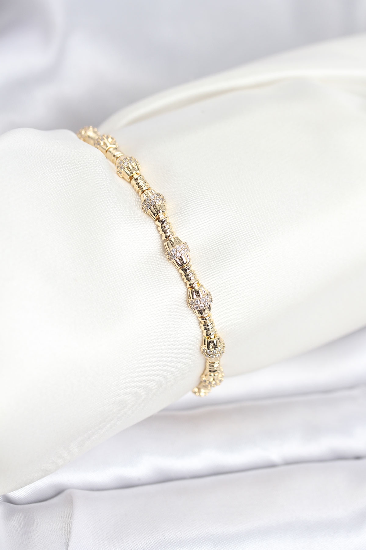 Pirinç Gold Renk VIP Seri Punta Model Zirkon Taşlı Kadın Bileklik - TJ-BB8269