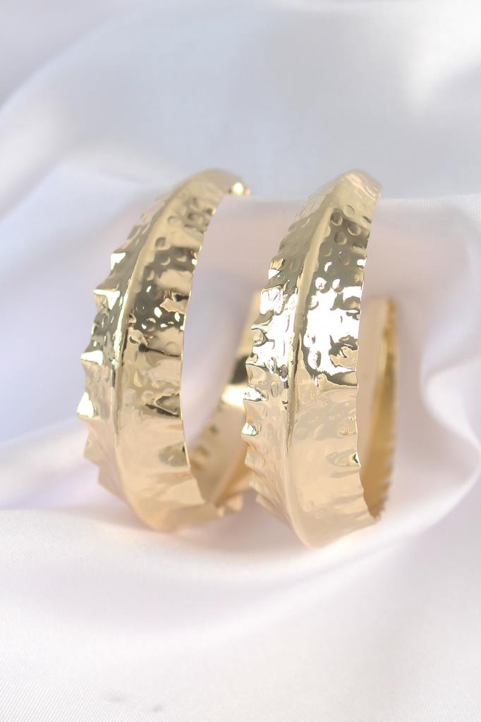 Pirinç Gold Renk Yaprak Desenli Halka Küpe - TJ-BKP8921