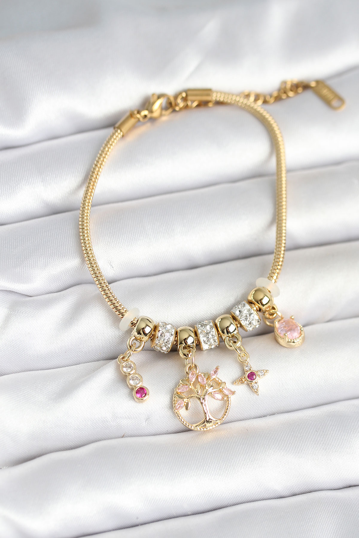 Pirinç Gold Renk Yaşam Ağacı Charmlı Kadın Bileklik - TJ-BB7989